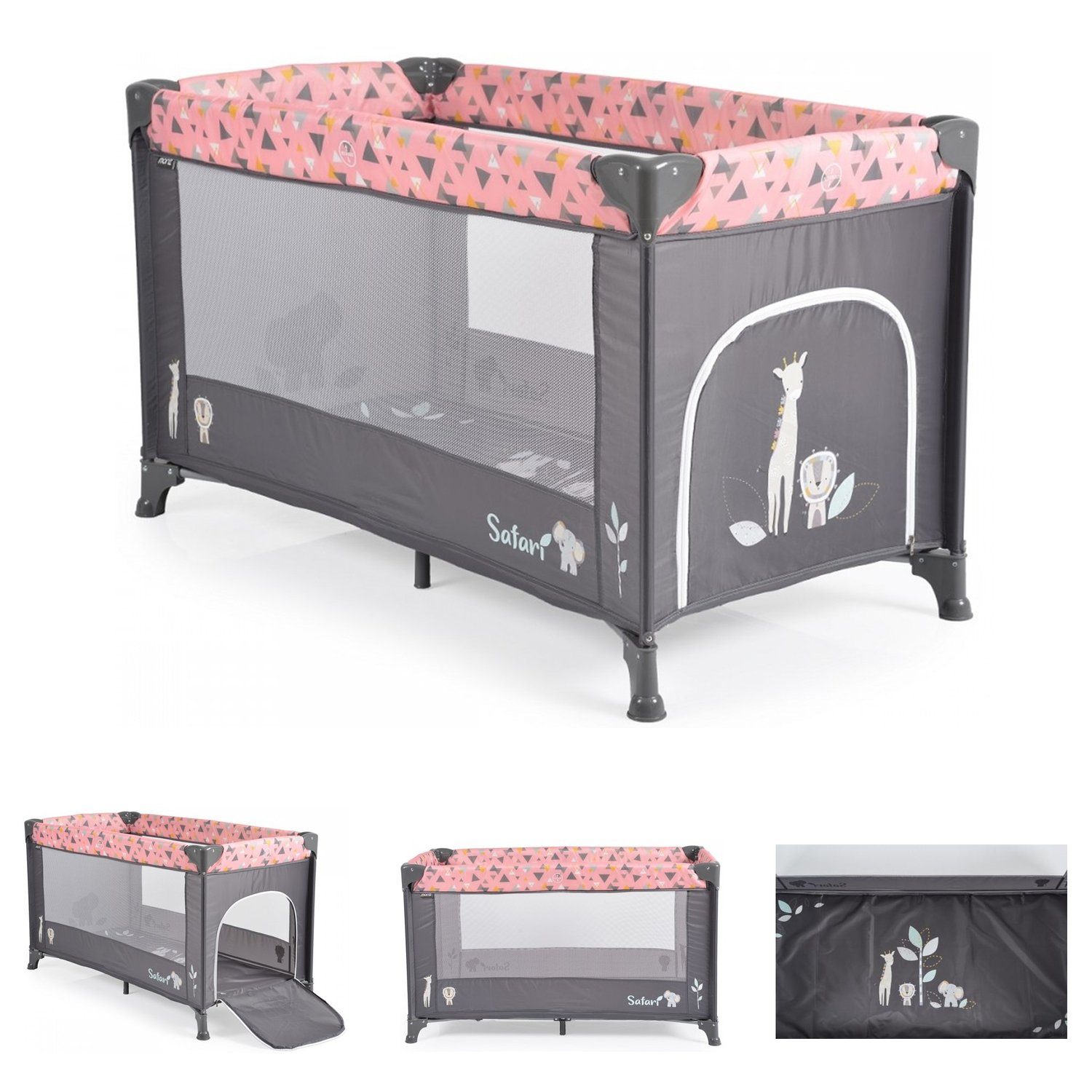 Das Kinderreisebett Safari ist ab Geburt bis zu einem maximalen Gewicht von 14 kg geeignet. Das Reisebett wird mit einer praktischen Tragetasche geliefert und ist ideal für Reisen oder für den Besuch bei den Großeltern gut geeignet. Auch zuhause kann es wunderbar als Laufstall oder Spielbereich genutzt werden. Der seitliche Eingang ist mit Reißverschluss ausgestattet, so kann Ihr Kind selbst rein und raus klettern. Die mitgelieferte Matratze wird mit einem Klettverschluss befestigt. Damit Sie immer Ihren kleinen Liebling im Blick haben, ist das Kinderreisebett mit großen Sichtfenstern ausgestattet.