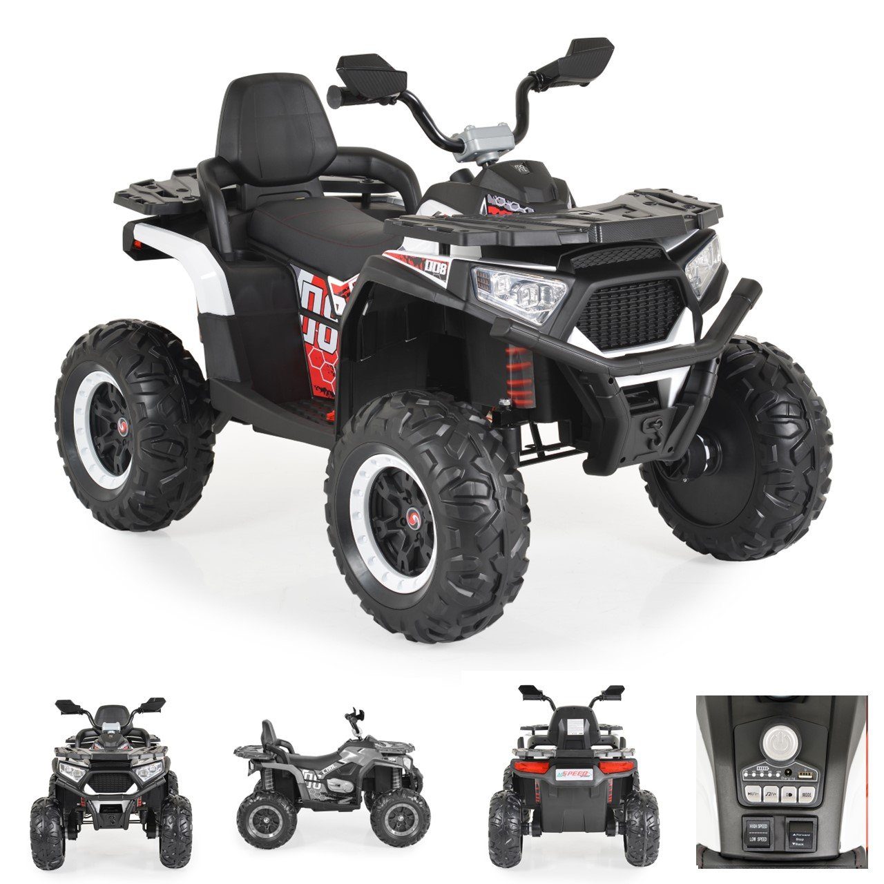 Kinder ab 3 Jahren werden das Kinder-Elektro-Buggy Cool NEL-007 von Moni lieben. Es erreicht eine Geschwindigkeit von bis zu 3,5 km/h, mit der Ihr Kind die Gegend erforschen kann. Dank der vier Motoren kann der Buggy problemlos Kinder mit einem Maximalgewicht von 30 Kilogramm befördern. Eine Musikfunktion mit zusätzlichen Anschlüssen für USB und MP3 sorgt für die musikalische Untermalung während der Fahrt. Zwei Geschwindigkeitsstufen sowie der Vor- und Rückwärtsgang runden das Gesamtpaket zusätzlich ab. Das Quad bremst automatisch, sobald Ihr Kind den Fuß vom Gas nimmt.