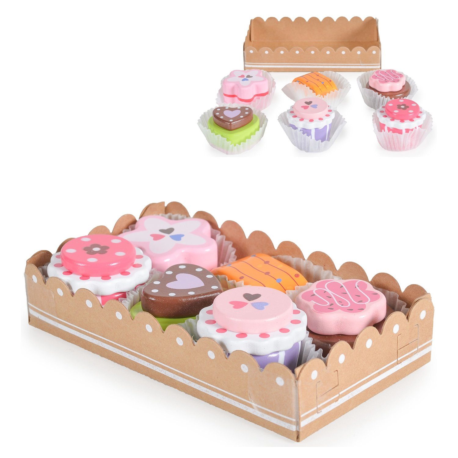 Sie suchen Zubehör für den Kaufladen oder die Spielküche? Dann darf dieses 6 teilige Holz Kuchenset von Moni nicht fehlen. Die unterschiedlichen Kuchen mit Kuchenförmchen sind für Kinder ab 2 Jahren geeignet. Das Spielzeug kann auch als Geburtstags-Tischdeko verwendet werden. Geliefert wird das Kuchenset in einer Box die überall verstaut werden kann. Darüber hinaus wird durch Rollenspiele die Kreativität Ihres Kindes gefördert.