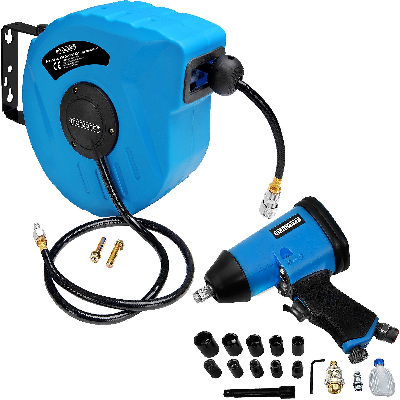 - 1x Automatik Schlauchtrommel 10m (bereits komplett vormontiert) + Druckluftwerkzeug nach Wahl