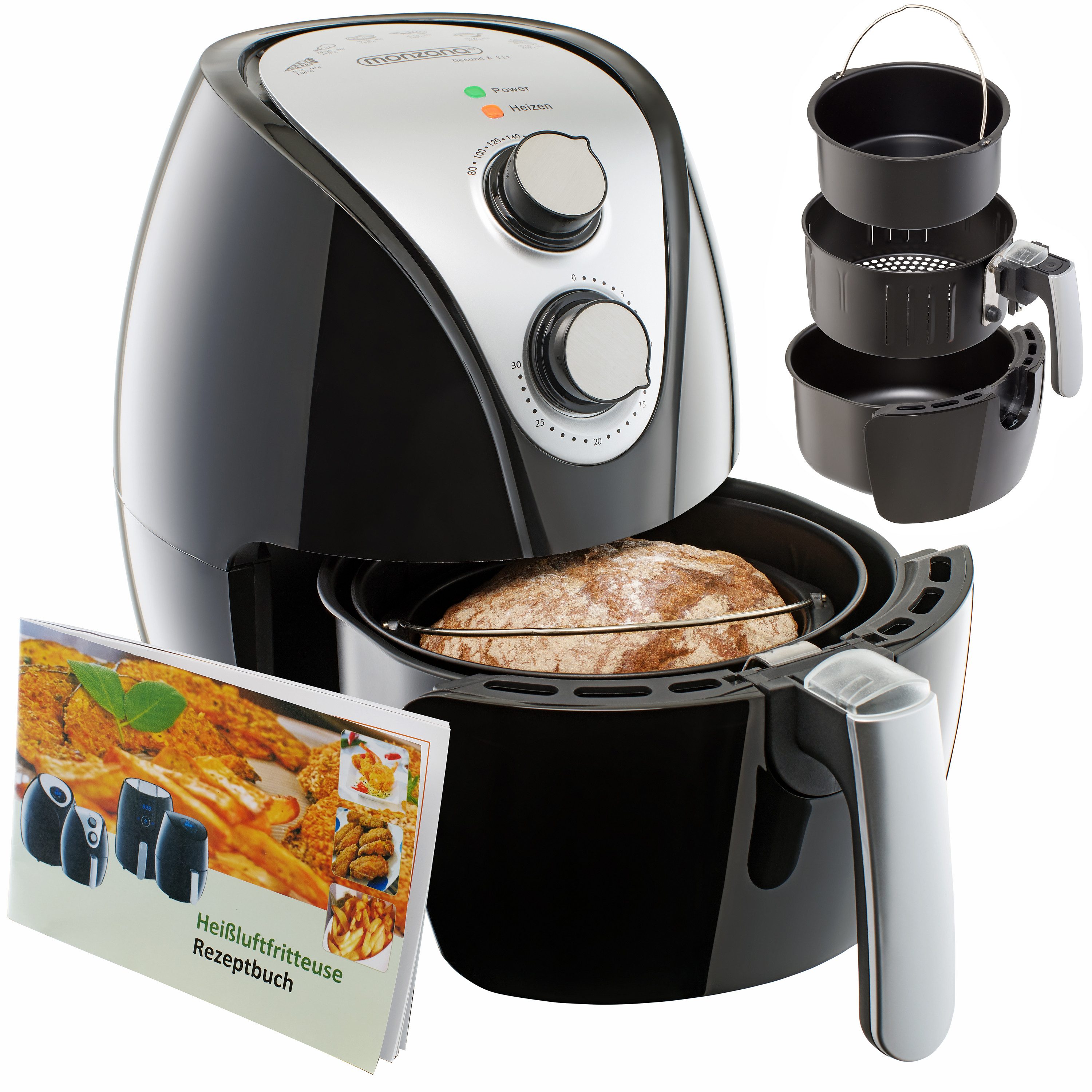 Mit der vielseitigen 9-in-1 Heißluftfritteuse der Marke Monzana können Sie nicht nur Fisch, Fleisch und Pommes fettarm oder sogar fettfrei zubereiten, sie eignet sich auch als Brotbackautomat.
