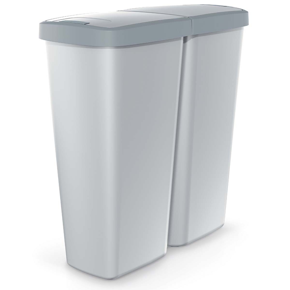 Mit einem Volumen von 2x25 Litern bietet er viel Platz für täglich anfallenden Reststoffe, die getrennt entnommen werden können. Die beiden separaten Deckel schließen unerwünschte Gerüche verlässlich ab und werden mit einem Druckknopf geöffnet. Sie können in der obersten Position arretiert werden, während eine integrierte Halterung für den optimalen Sitz der Beutel sorgt. Der Behälter hat keine Trennwand zum flexiblen Verwenden von kleinen und größeren Tüten.