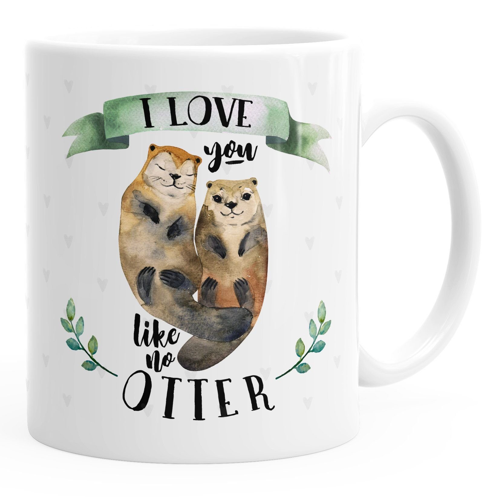 zum verlieben liebevolle Geschenktasse für Verliebte: Kaffeetasse mit zwei verliebten Ottern und "I love you like no otter" Spruch der Trend-Marke MoonWorks®