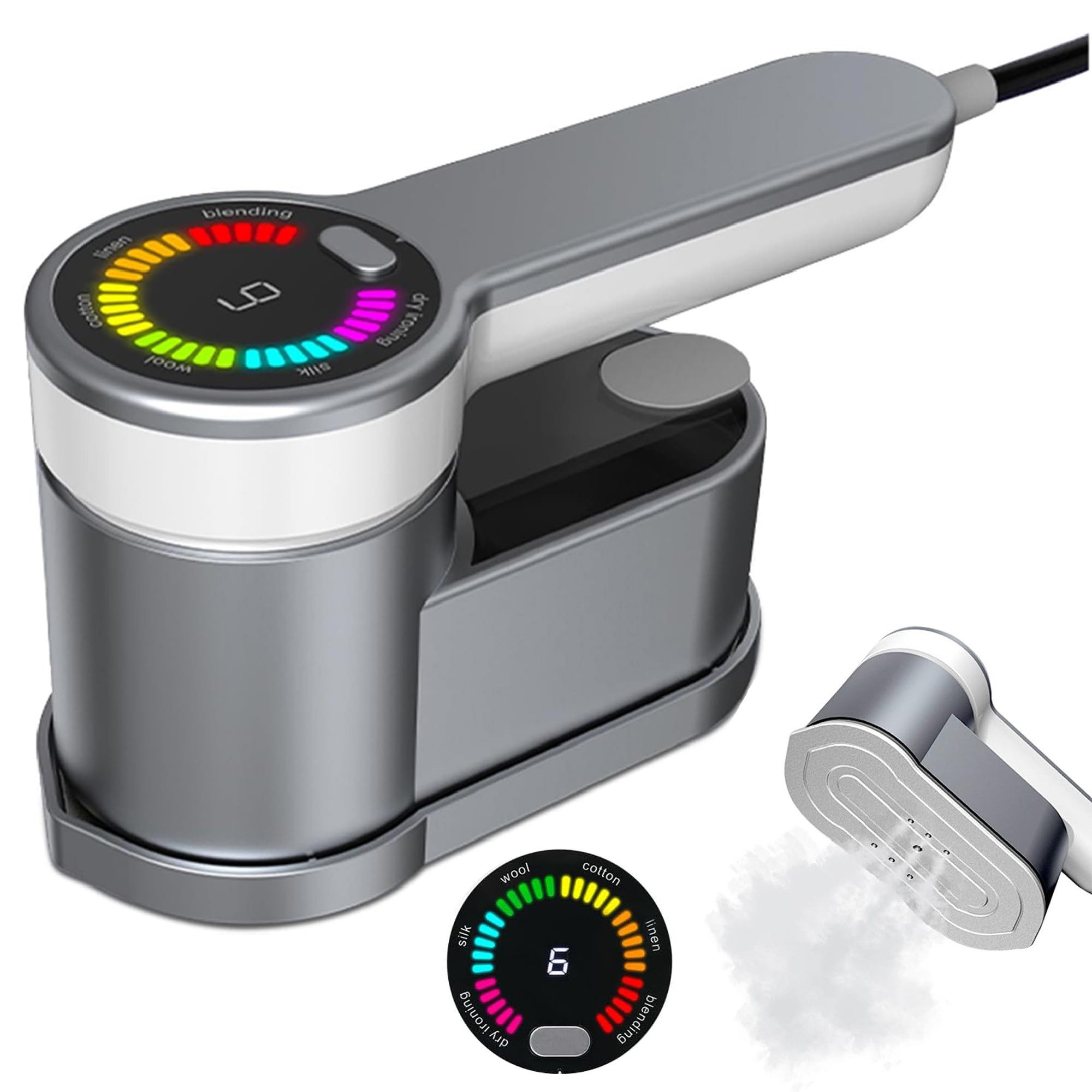 Dieses Mini-Dampfbügeleisen bietet sechs einstellbare Bügelmodi, darunter Trockenbügeln und fünf Dampfbügelstufen. Mit dem integrierten LED-Display können Sie ganz einfach den passenden Modus für unterschiedliche Stoffarten wählen. Es eignet sich sowohl für empfindliche Kleidung als auch für dickere Textilien, die eine kraftvolle Dampffunktion erfordern – ideal für den vielseitigen Alltagsgebrauch.