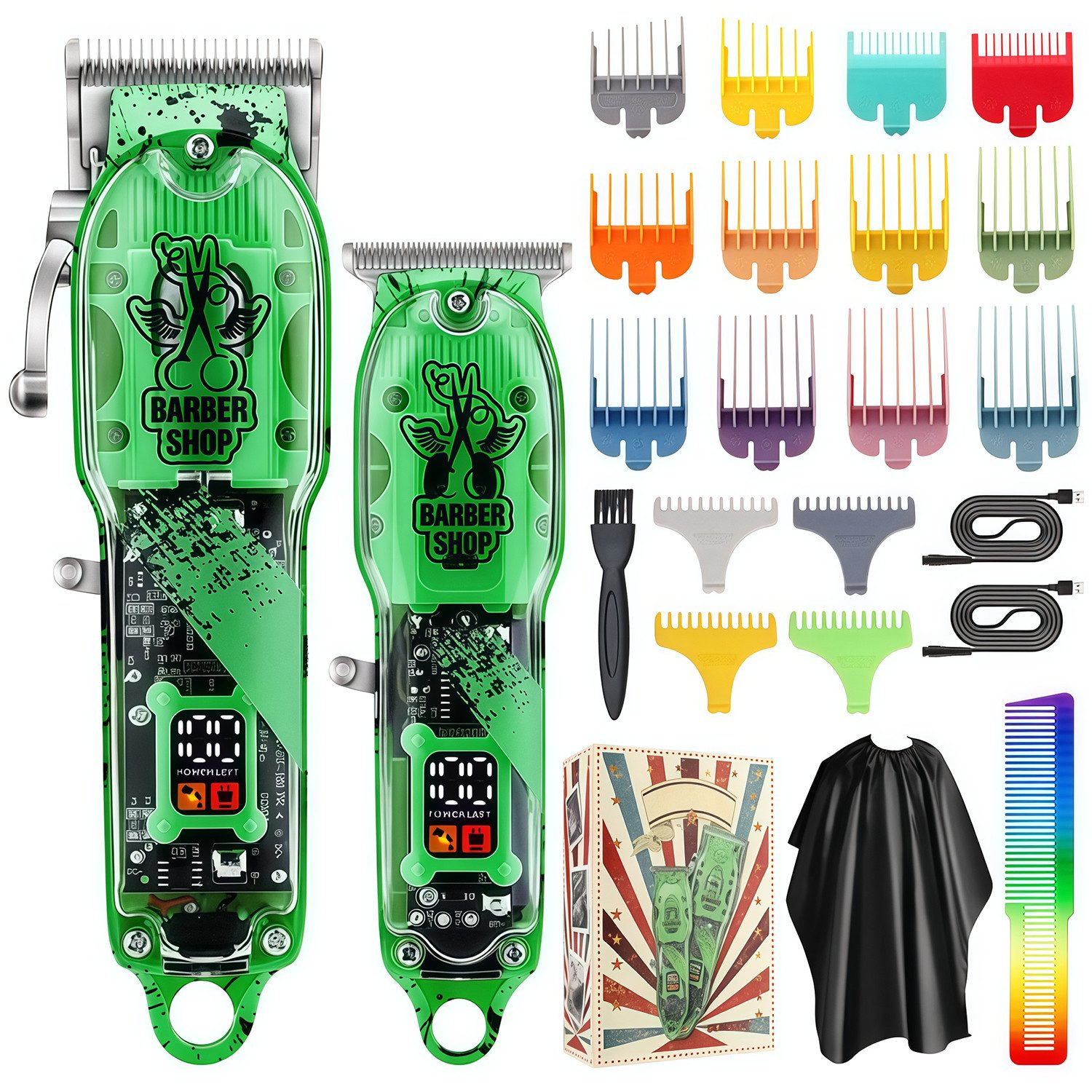 Dieses professionelle Set enthält alles, was Sie für einen perfekten Haarschnitt benötigen: 1 leistungsstarker Haarschneider, 1 kompakter Präzisionstrimmer, 16 farbcodierte Führungskämme, 1 Reinigungsbürste, 1 Pflegeöl, 1 Haarkamm, 1 Ladegerät sowie 1 praktischen Friseurumhang. Perfekt für die Pflege von Haar, Bart und Konturen – ideal für den privaten Gebrauch oder als Geschenk.