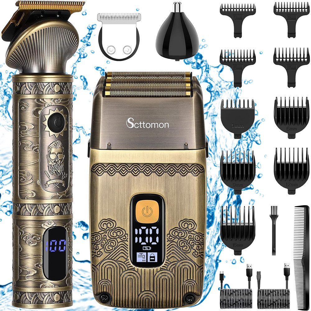 Professionelles Folienrasierer- und Haarschneider-Set: Das 3-in-1-Trimmerset enthält einen Haarschneider mit fünf Führungskämmen ((3/6/9/12/15 mm), einen T-Trimmerkopf mit vier Führungskämmen ((1/3/ 5/7 mm) Nasen-/Ohrhaarschneider für Männer, Bartschneideraufsatz und Folienrasierer, die praktisch sind und die verschiedenen Bedürfnisse beim Rasieren von Glatze, Nasen-/Ohrhaaren, Bart und anderen Körperhaaren erfüllen können Für Heimanwender und Friseure ist es auch eine gute Wahl für Ihre Familie an wichtigen Feiertagen