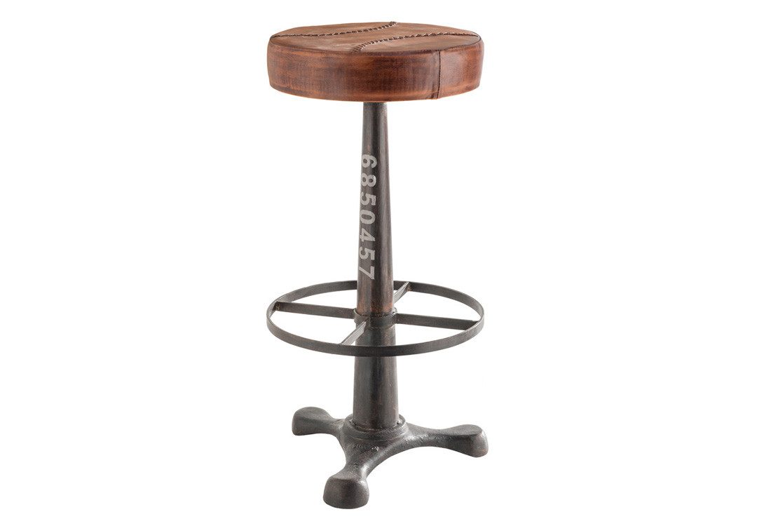 Dieser Barhocker wirkt wie ein Dachbodenfund von der Auflösung einer Kultbar im Hafenviertel aus den 20er Jahren. Die Kombination aus Metall und Vintage-Leder verleiht ihm sein charakteristisches Äußeres. Holen Sie sich ein brandneues Stück mit dem Flair vergangener Tage in die eigenen vier Wände. Eignet sich perfekt, um die Hausbar im Keller aufzupeppen. Durch die praktische Fußablage und den stabilen Dreifuß stimmt auch die Sitzqualität.