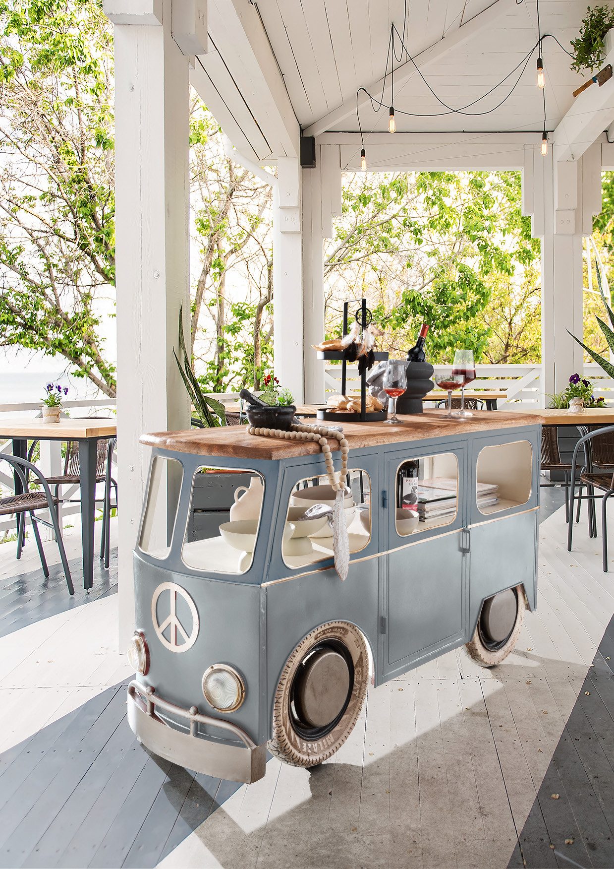 Dieser Bus ist Kult! Wer träumt nicht von diesem originellen Fahrzeug, das ein Symbol für Freiheit und Lebensfreude ist. Warum träumen, wenn man sich dieses coole Möbelstück nach Hause holen kann. Mit allem ausgestattet, was eine Bar braucht und mit viel Stauraum versehen, ist dieser Mini-Bus vielseitig einsetzbar und ein optischer Volltreffer.