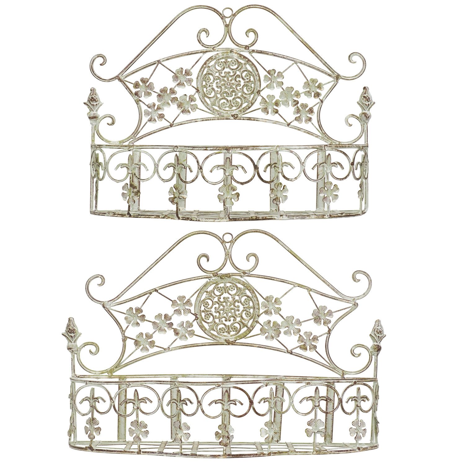 1x Moritz Wandkörbe Pflanzkörbe 2er Set grau weiß Landhausstil Pflanzkorb Shabby Style Antik Stil