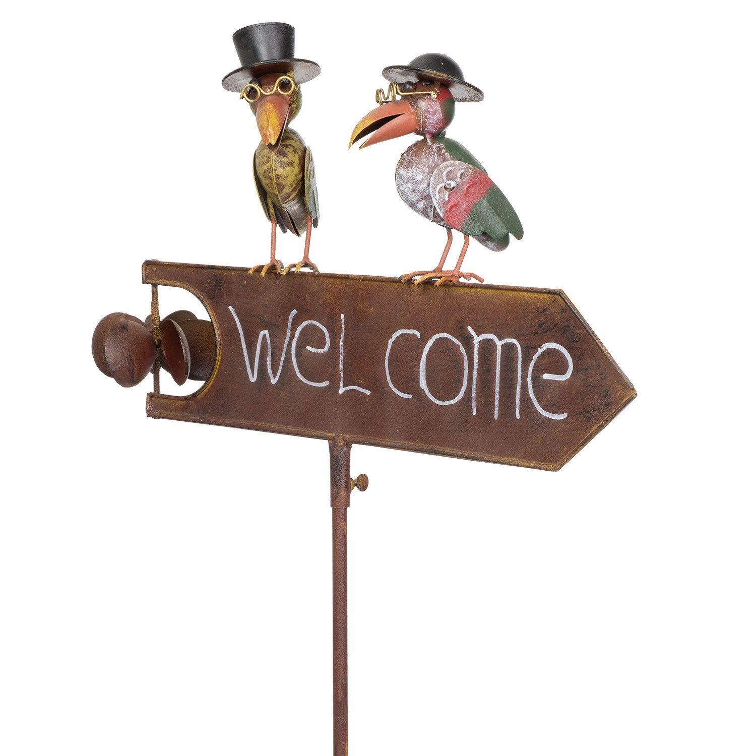 Gartenstecker Gartenstecker Welcome mit 2 Vögeln 127 cm aus Metall