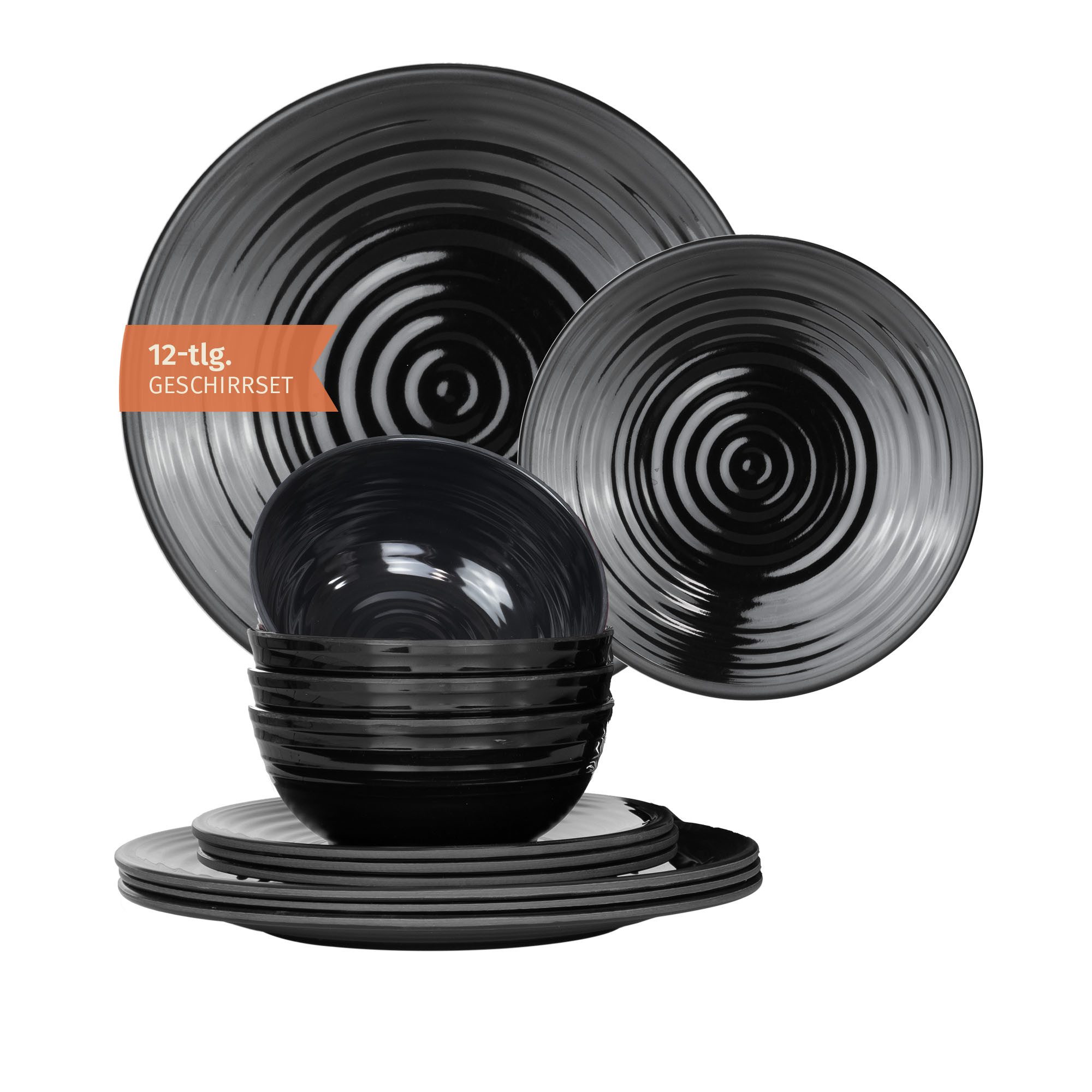 Geschirr-Set Camping Geschirr Stone Black 12-teilig