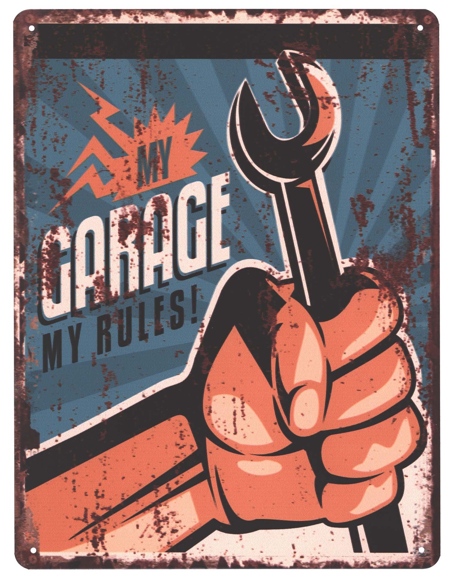 Moritz Metallschild Blechschild My Garage My Rules!, (Einzeln), 25 x 33 cm Vintage Retro Deko Schild Metallschild Wandbild Schild