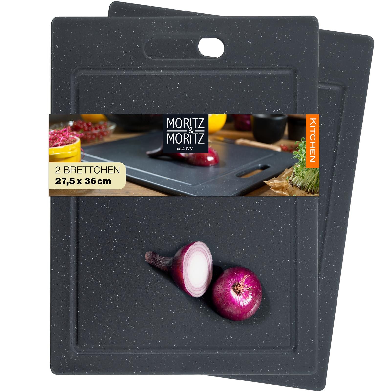 Das zeigt sich auch in unserem 2-teiligen Schneidebrett-Set aus der Moritz & Moritz-Serie „KITCHEN“: Im angesagten Granit-Look und in der Размер von je 36 x 27,5 cm erhalten Sie zwei Schneid-Unterlagen, die Sie bei der täglichen Küchenarbeit hilfreich unterstützen. Unsere hygienischen Schneidebretter eignen sich hervorragend als Unterlage zum Schneiden, Anrichten und Servieren von Lebensmitteln aller Art.