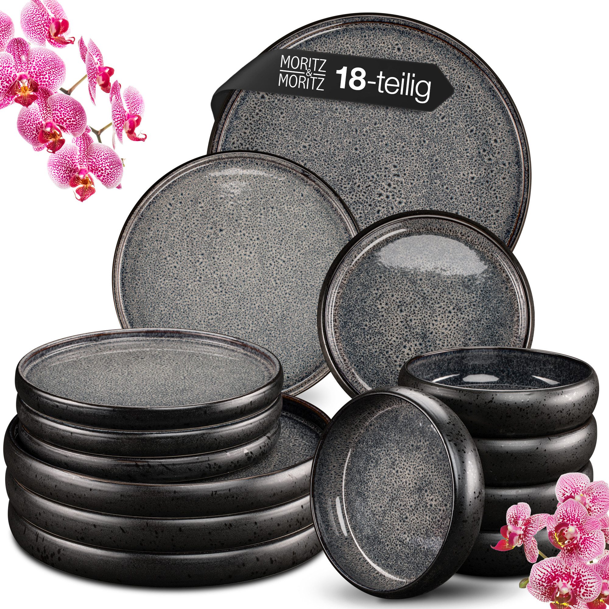 Moritz & Moritz 18-tlg Steinzeug Geschirr Set 6 Personen - Tafelservice aus je 6 Dinner Teller, Kleine Teller, Tiefe Teller