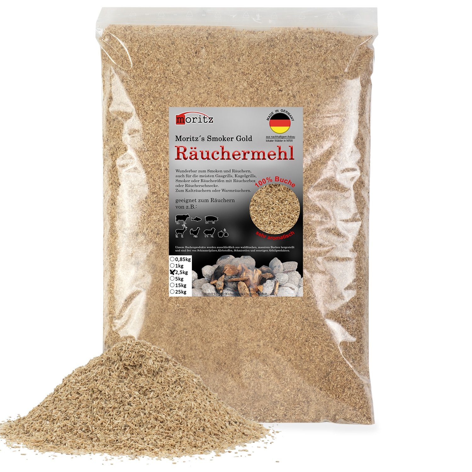 Moritz Smokers Gold Räuchermehl 0,5 - 1 mm - zum Kalt- und Heißräuchern geeignet auch zur Verwendung im Räucherschrank, Räucherofen, Sparbrand, Räucherschnecke oder einer Räucher-Spirale oder auch in einer Räucherbox, im Smoker, beim BBQ Räuchermehl aus naturbelassenem Buchenholz, das beim Räuchern von Lebensmitteln wie Fisch, Fleisch, Wurst, Schinken, Käse und Gemüse verwendet werden kann Die Buche ist fein gemahlen auf 0,5 mm - 1 mm und entwicklet einen intensiven Rauch für tolles Raucharoma - 100% Naturprodukt - 100% hochwertiges Buchenholz - ohne Zusatzstoffe Zum Veredeln von Lebensmittels - für Industrie und privaten Gebrauch geeignet - erzeugt ein köstliches Aroma und eine delikate Rauchfarbe