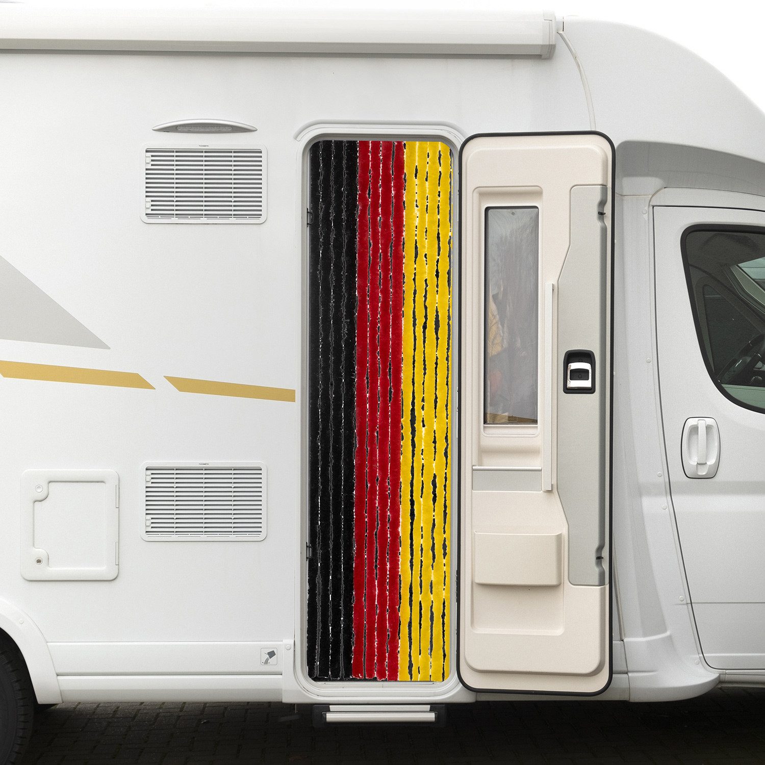 Lieferumfang | 1x Moritz Flauschvorhang aus Chenille 56 x 185 cm schwarz-rot-gold Türvorhang als Fliegenschutz Insektenschutz für Camping Wohnwagen |