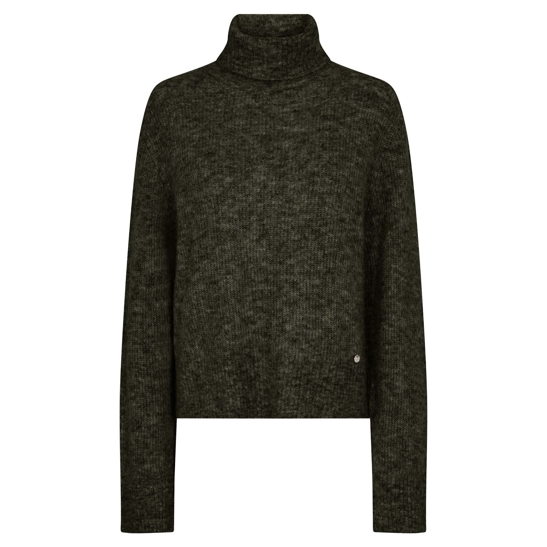 Der Rollkragenpullover AIDY von MOS MOSH ist ein zeitloses Highlight, das Ihre exklusive Garderobe perfekt ergänzt. Der Pullover in elegantem Grün ist nicht nur ein Kleidungsstück, sondern ein Statement für Stil und Eleganz. Mit seinem geradlinigen Schnitt, dem gerippten Rollkragen und den überschnittenen Schultern strahlt der Pullover AIDY zeitlose Eleganz aus. Die Rippbündchen an Ärmeln und Saum verleihen dem Pullover eine perfekte Passform und eine exklusive Note. Das metallische Logo-Detail auf der Vorderseite ist ein dezenter Hinweis auf die hohe Qualität und die raffinierten Details, die MOS MOSH auszeichnen. Doch nicht nur die Optik überzeugt - die weiche Haptik der Alpaka-Wollmischung macht das Tragen dieses Pullovers zu einem luxuriösen Erlebnis. Der Rollkragenpullover AIDY ist vielseitig kombinierbar. Tragen Sie ihn solo mit einer eleganten Hose oder einem Rock für einen stilvollen Look. Für gemütliche Abende kann er mit einer bequemen Jeans kombiniert werden. Dieser Pullover ist ein vielseitiges Kleidungsstück, das sich mühelos in Ihre Garderobe einfügt. Holen Sie sich den Rollkragenpullover AIDY mit Alpakawolle in der Herstellerfarbe Grape Leaf und erleben Sie, wie er Ihr Outfit auf eine neue Ebene hebt. Genießen Sie Stil und Luxus in Perfektion, die Sie nur bei uns finden - im exklusiven HENNE Online Shop.