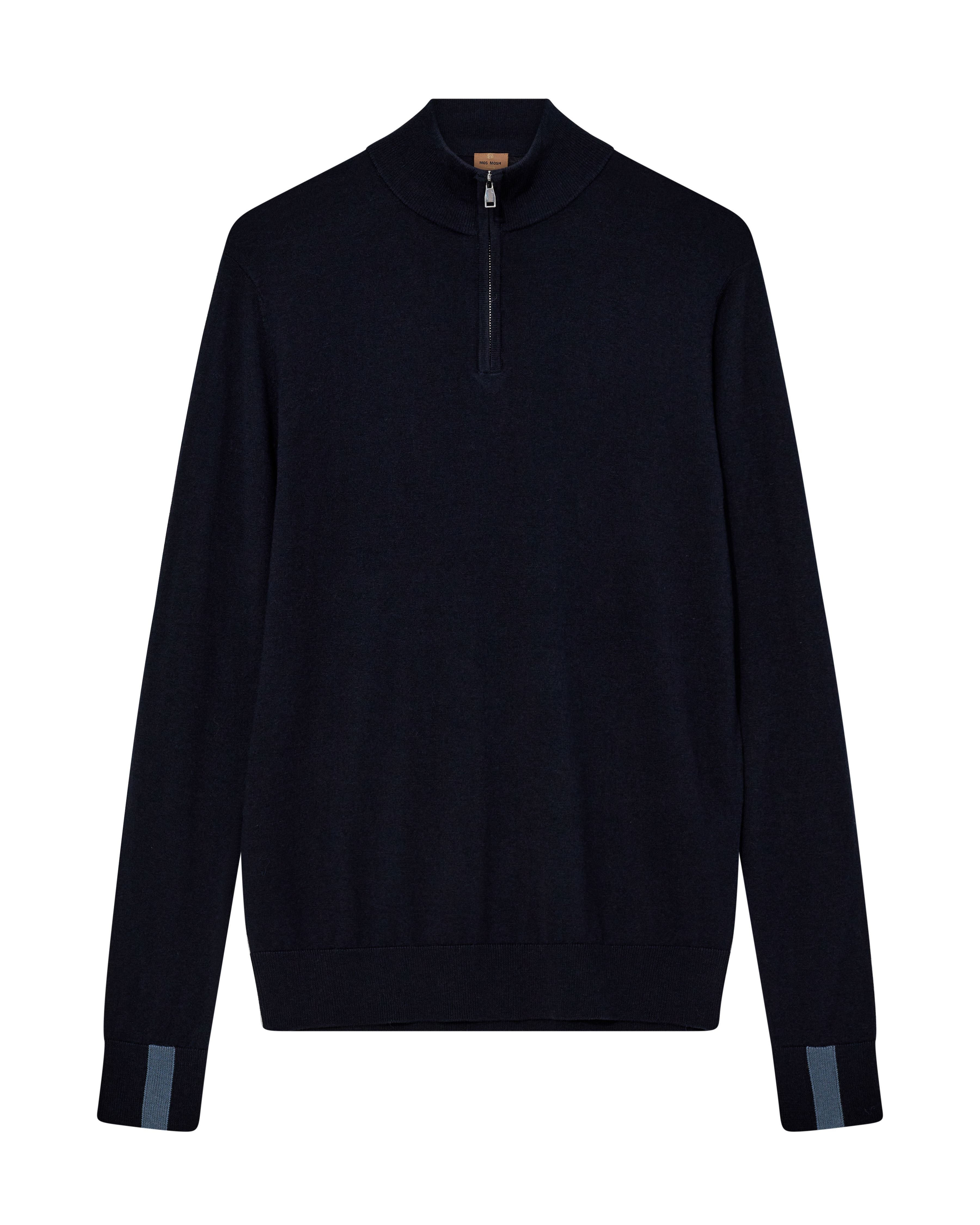 Regular fit Strickpullover, gefertigt aus einer weichen Mischung aus Seide und Wolle. Mit hohem Kragen und Reißverschluss, gerippten Abschlüssen und kontrastierenden Streifen an den Manschetten. Ideal zum Layering mit Denim auf Denim.