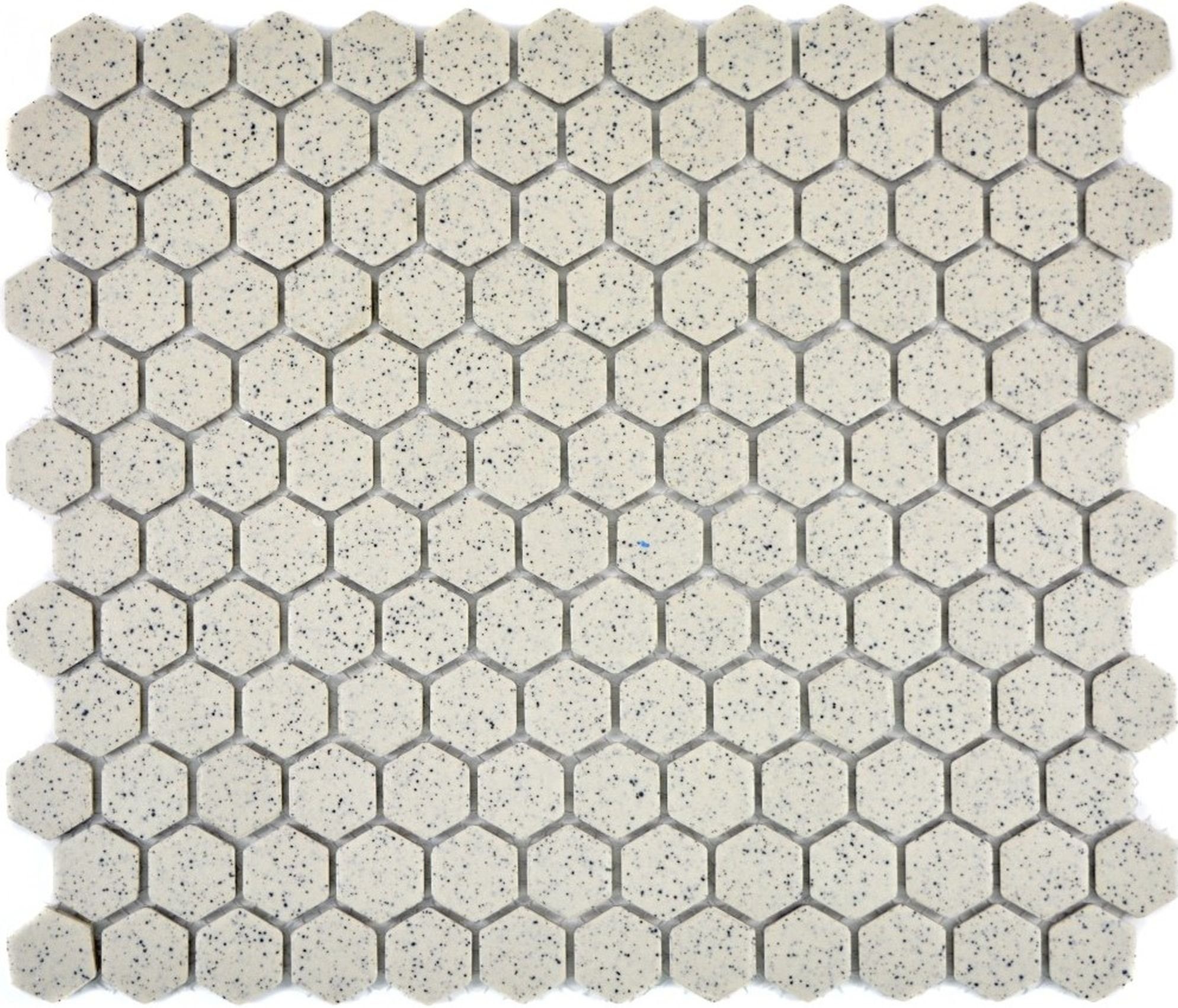 Mosaik Fliese Keramik cremeweiß mini Hexagaon gesprenkelt unglasiert rutschsicher Fliesenspiegel Wand - MOS11A-0103-R10