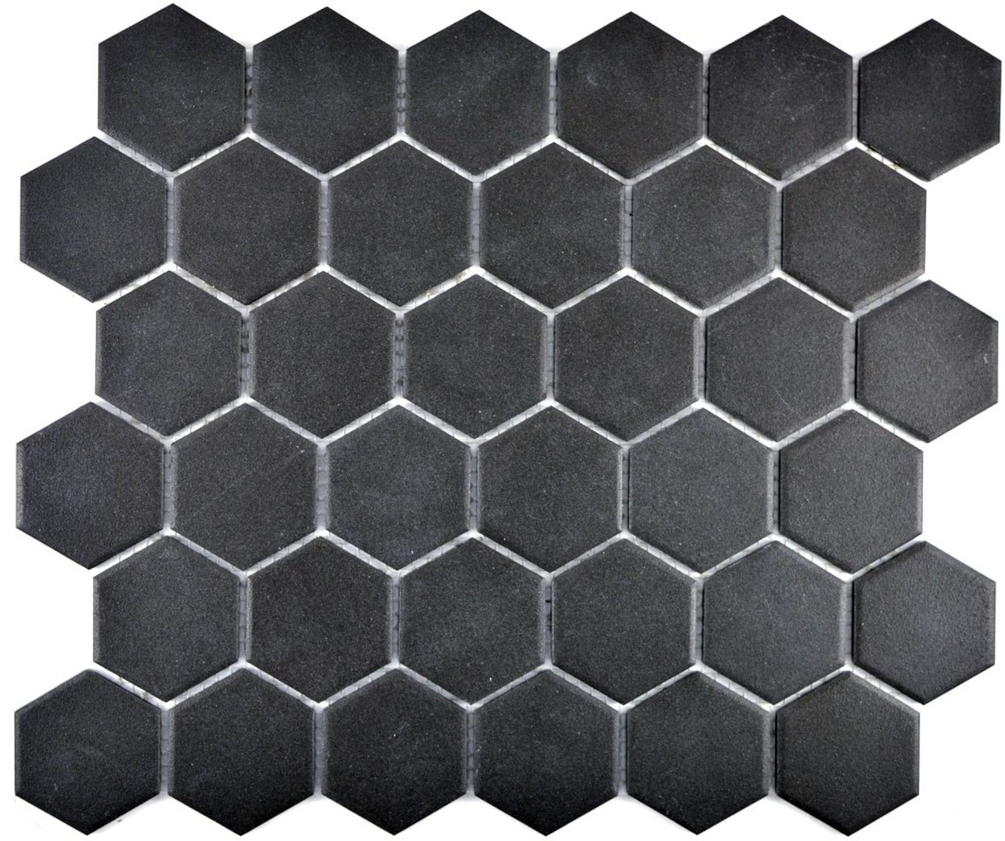 Mosaikfliese Keramik Hexagon schwarz unglasiert rutschsicher Duschtasse Schwimmbad Wand - MOS11B-0304-R10