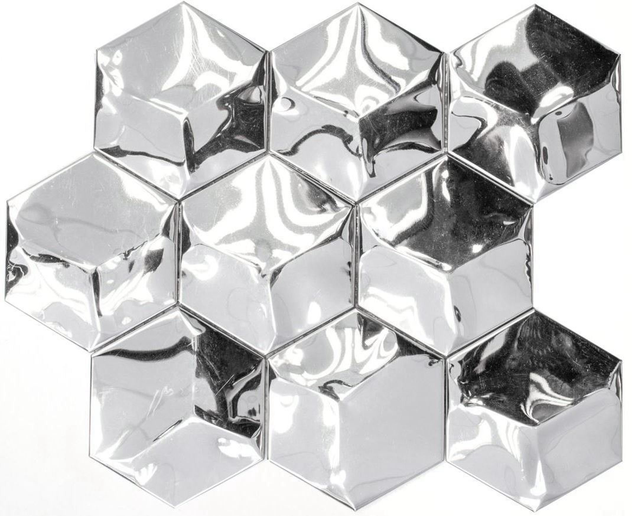 Mosaik Fliese Edelstahl silber Hexagon 3D Stahl glänzend MOS129-HXM10SG
