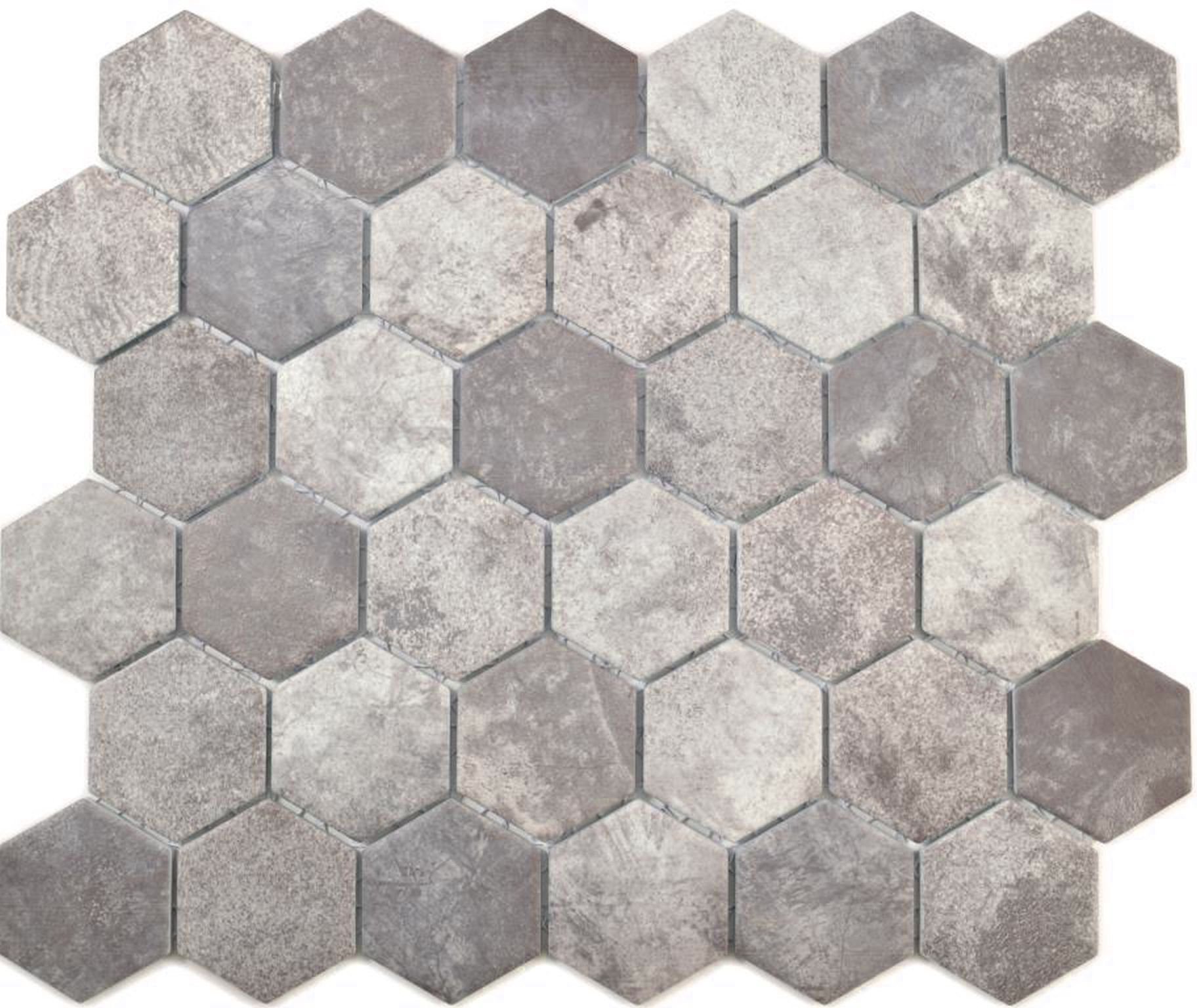 Keramik Mosaik Hexagon Zementoptik dunkelgrau Mosaikfliese Wand Fliesenspiegel Küche Bad WC - MOS11H-0026