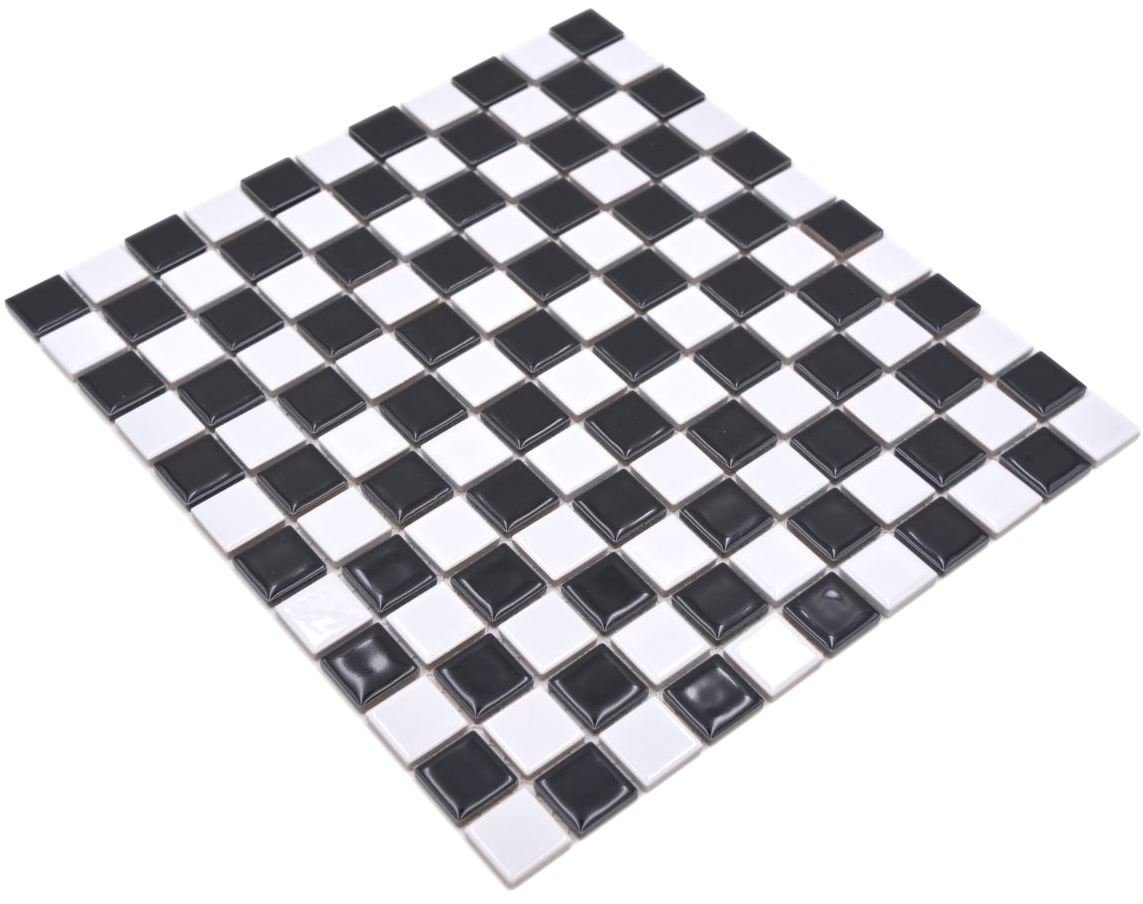 Mosaikfliese Keramik schachbrett schwarz weiß glänzend Fliesenspiegel MOS18-0306