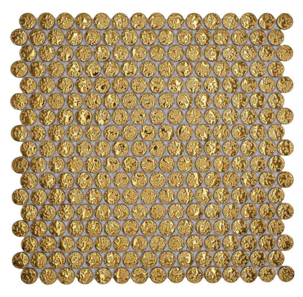 Keramik Mosaikfliese Knopf Loop Penny Rund uni gold gehämmert MOS10-0707