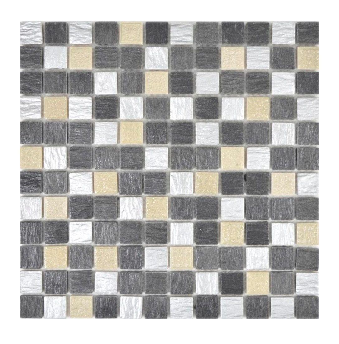 Kunststein Rustikal Mosaikfliese Resin grau schwarz anthrazit silber creme beige glitzer Fliesenspiegel Wand Küche Bad - MOS83-0226