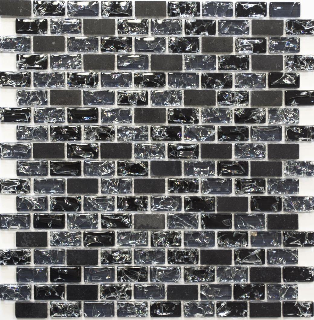 Mosaik Stäbchen Verbund Naturstein Mosaikfliese schwarz anthrazit Brick Glasmosaik Bruchglas Marmor Küchenrückwand Bad - MOS87-b1128