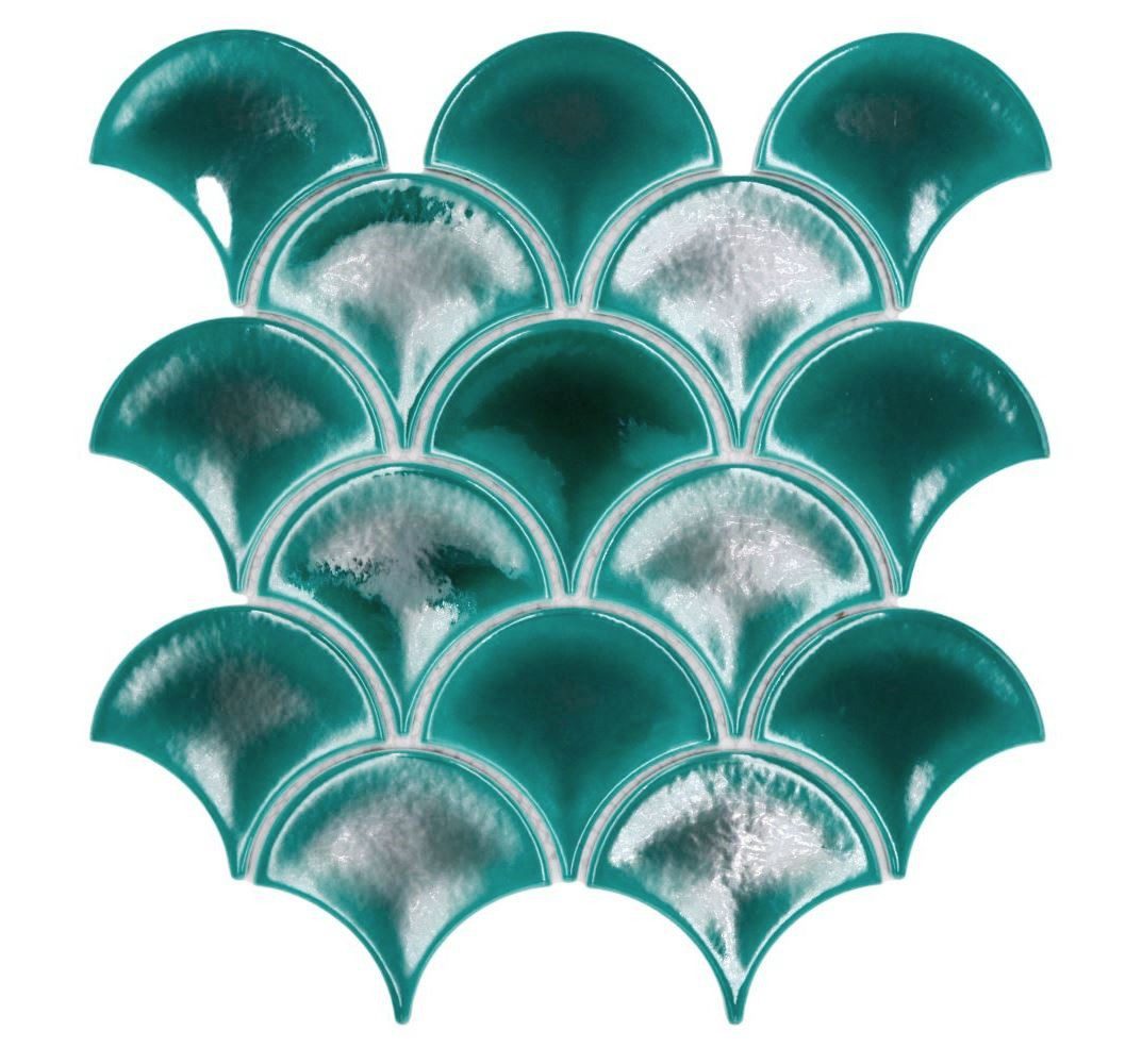 Keramik Mosaikfliese Fächer Fischschuppen uni dunkelgrün ice crackled Style MOS13-FS5