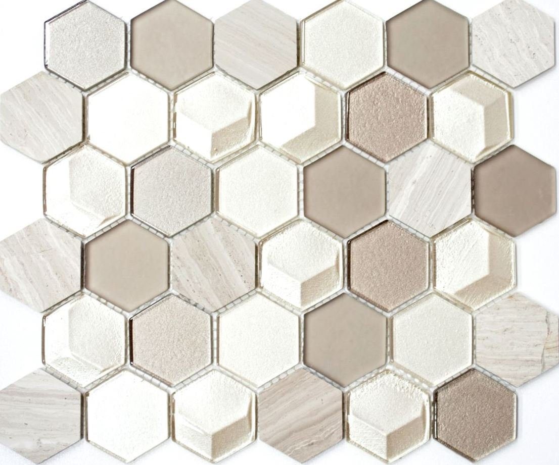Naturstein Glasmosaik Mosaikfliesen Hexagonal perlmutt beige creme nussbraun Fliesenspiegel Wandverkleidung Bad - MOS11D-44