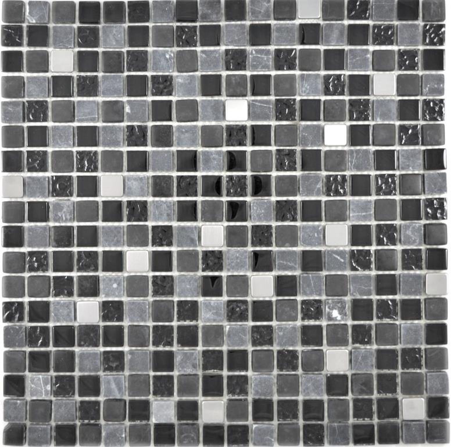 Glasmosaik Naturstein Mosaikfliese Edelstahl schwarz silber anthrazit matt Wand Fliesenspiegel Küche Bad - MOS92-0322