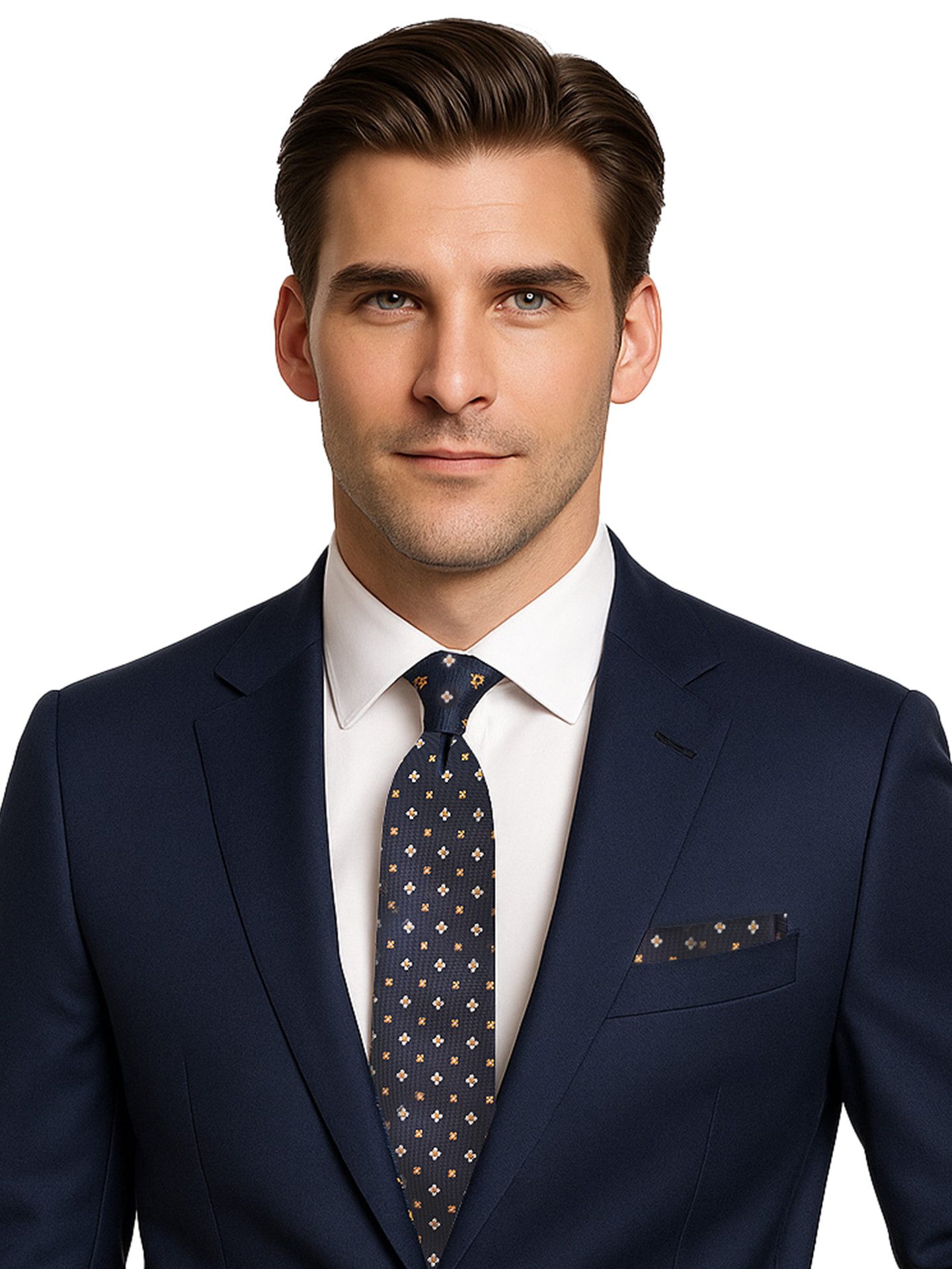 Was Sie erwartet: Eine makellos gefertigte Krawatte aus 100% Seide, dazu ein passendes Einstecktuch und elegante Manschettenknöpfe sowie eine Krawattennadel – alles farblich abgestimmt in zeitlosen, klassischen Tönen. Ob Business-Meeting, Familienfeier oder Dinner-Date: Dieses Set spielt seine Rolle dezent – aber unübersehbar.