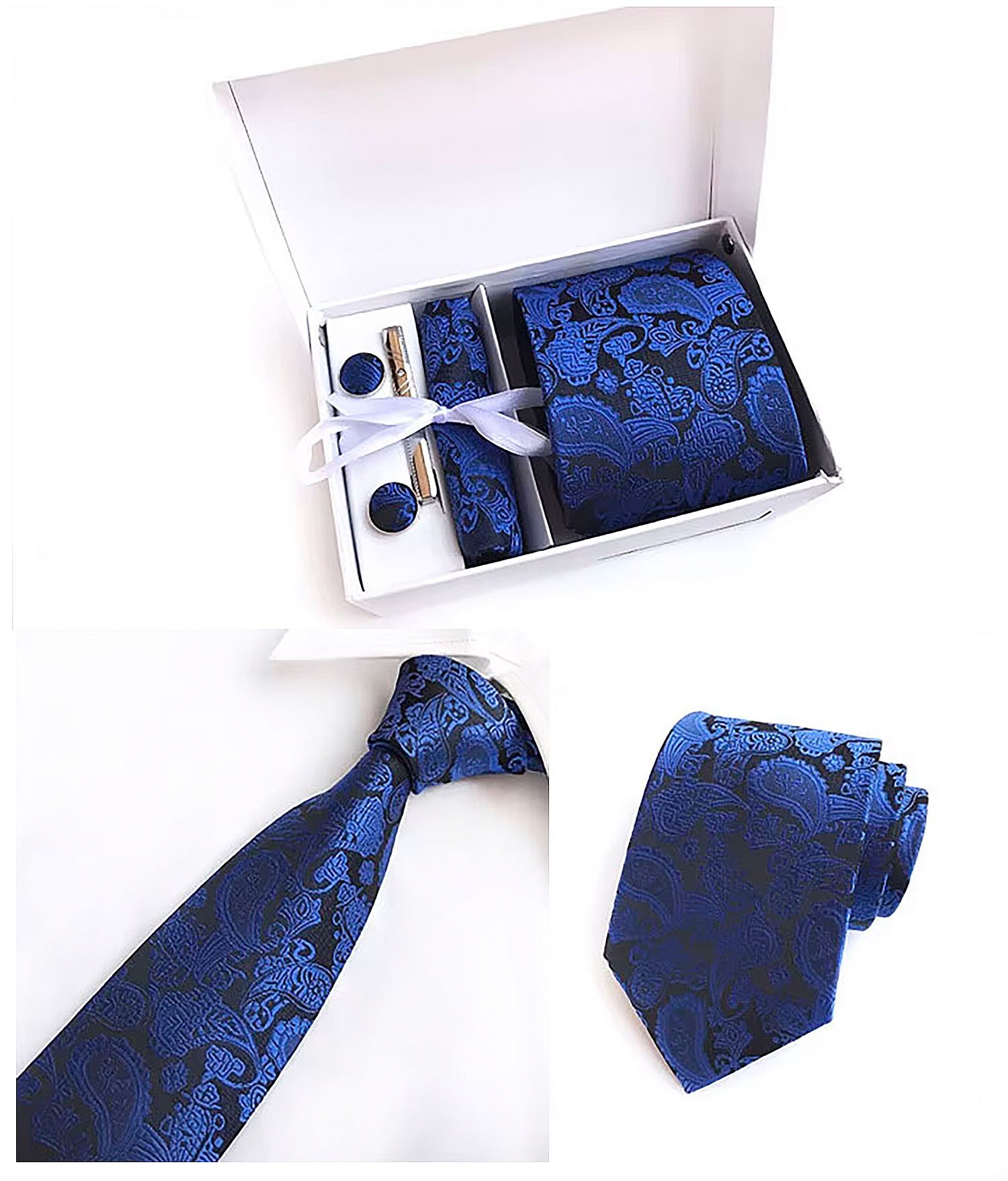 Was Sie erwartet: Eine makellos gefertigte Krawatte aus 100% Seide, dazu ein passendes Einstecktuch und elegante Manschettenknöpfe sowie eine Krawattennadel – alles farblich abgestimmt in zeitlosen, klassischen Tönen. Ob Business-Meeting, Familienfeier oder Dinner-Date: Dieses Set spielt seine Rolle dezent – aber unübersehbar.