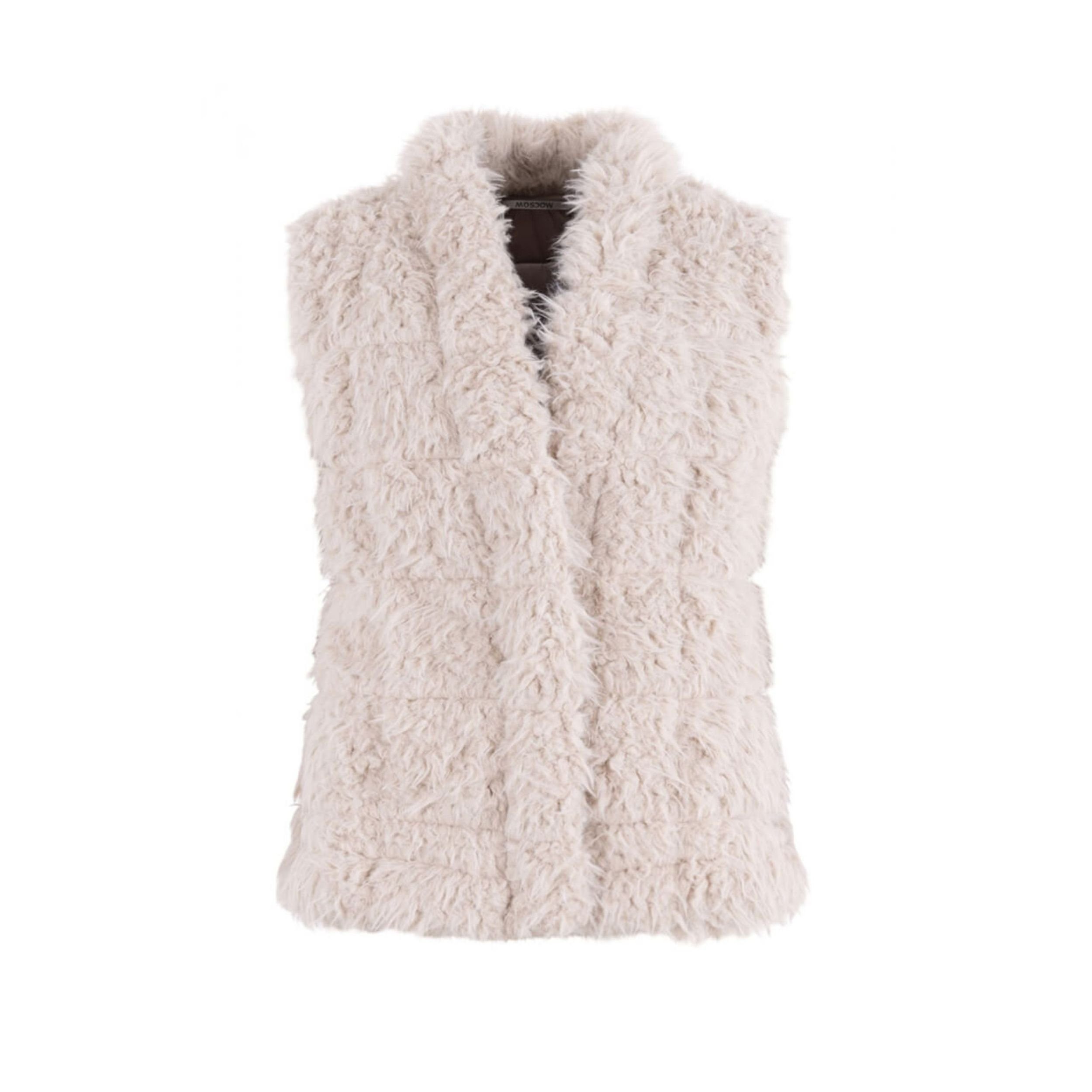 Die Weste Irina hat eine Felloptik und eine weiche Qualität. Sie hat einen Druckknopfverschluss und ist innen gefüttert. Die Weste hat eine normale, gerade Passform.