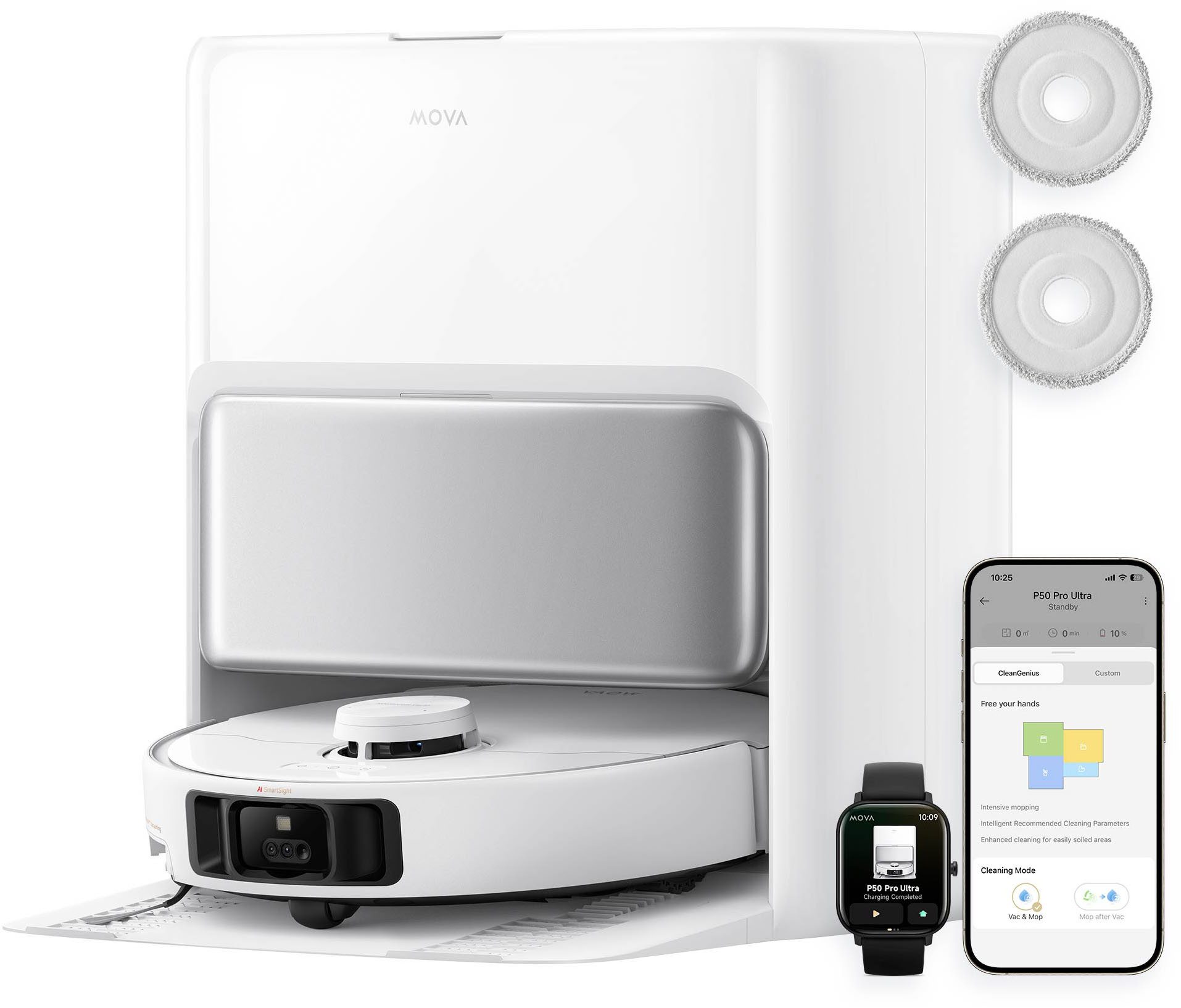 Впередe Vorteile | Automatische Rückkehr zur Ladestation. Die CleanChop™-Bürste schneidet die in den Staubsauger gelandeten Haare ab und verhindert somit das Verheddern von Haaren. Die RGB-Kamera erkennt effektiv hartnäckige Flecken und trockene Verschmutzungen. Flexible App- und Sprachsteuerung. Infrarotsensoren. Intelligente Schmutzerkennung. Mit seiner vollautomatischen Basisstation setzt der P50 Pro Ultra neue Maßstäbe in Sachen Komfort und Effizienz. Die Wischmopps und das Waschbrett werden automatisch mit 75 °C heißem Wasser gereinigt und anschließend mit 45 °C warmer Luft getrocknet – für maximale Hygiene und perfekte Sauberkeit. Staub und Schmutz werden bis zu 75 Tage lang automatisch in einem integrierten Behälter entsorgt, während der großzügige 4,5-Liter-Frischwasserbehälter und die Mopp-Waschlösung selbstständig von der Basisstation nachgefüllt werden. Ein 3,5-Liter-Schmutzwasserbehälter sorgt zusätzlich für müheloses Handling. Erleben Sie eine vollintegrierte Reinigungsstation, die Ihnen den Alltag erleichtert und Ihre Böden ohne manuellen Aufwand in neuem Glanz erstrahlen lässt. |
