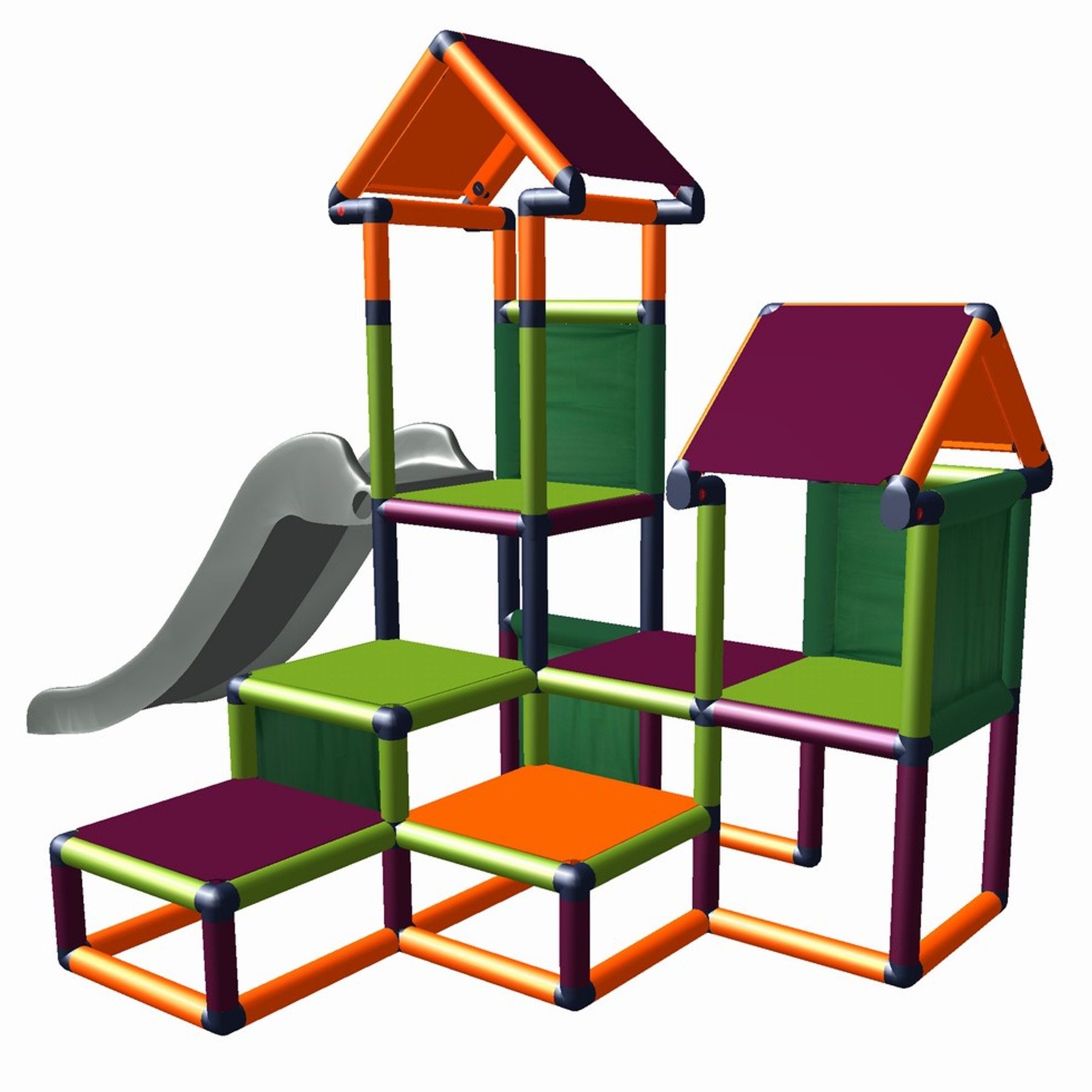 Kletter- und Spielcenter mit Rutsche zum Trainieren motorischer Fähigkeiten. Leichter Aufbau - Die Teile werden zusammengesteckt und mit Sicherungen gesichert.