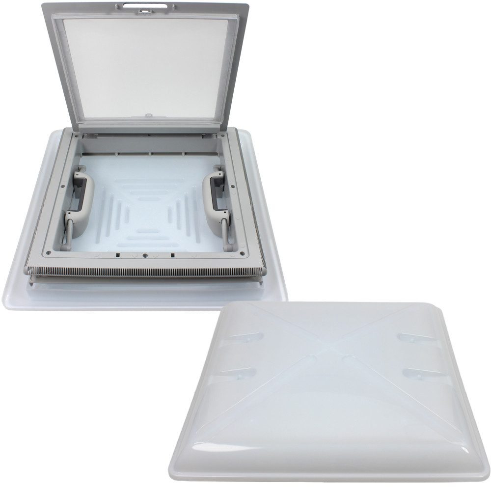 Milchglashaube Modell 46 für 40 cm x 40 cm Dachausschnitt mit Rollo und Insektenschutz in grau