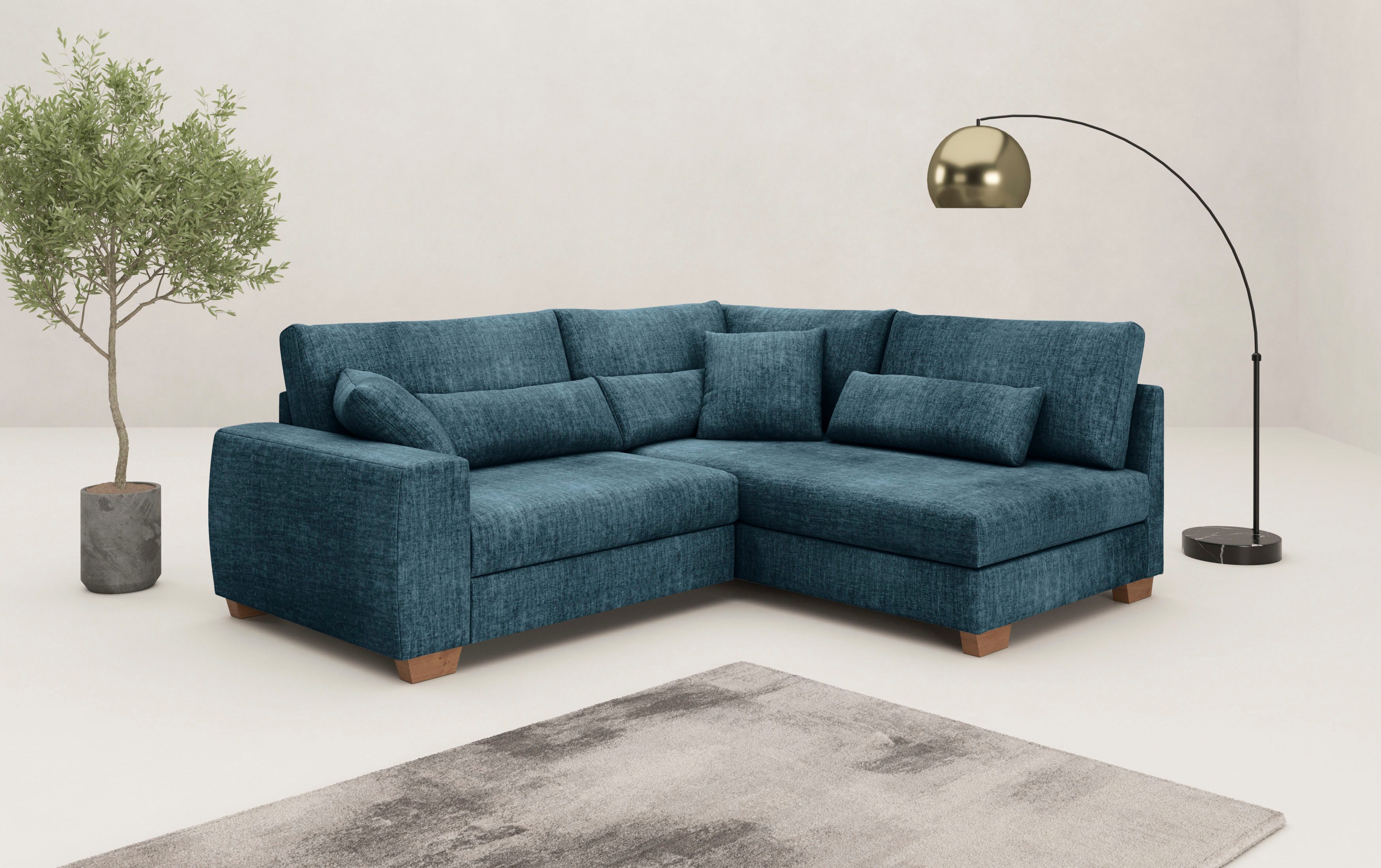 Eine dauerhaft elastische und komfortable Sitzfläche — das bekommst du bei diesem Ecksofa »Hilla L-Form, bis 140 kg belastbar« von Mr. Couch, das mit einer hochwertigen Wellenunterfederung ausgestattet ist. Wovon du auch profitierst, sind die passenden Zierkissen, die nicht nur schöne Deko-Element sind, sondern auch für noch mehr Komfort sorgen. Beim Ecksofa befindet sich die Ottomane, von vorne betrachtet, rechts. Die maximale Belastbarkeit pro Sitzplatz liegt bei einem Gewicht von 140 Kilogramm. Die Microfaser ist sehr pflegeleicht und strapazierfähig. Dieses Modell wurde von Hand gefertigt.