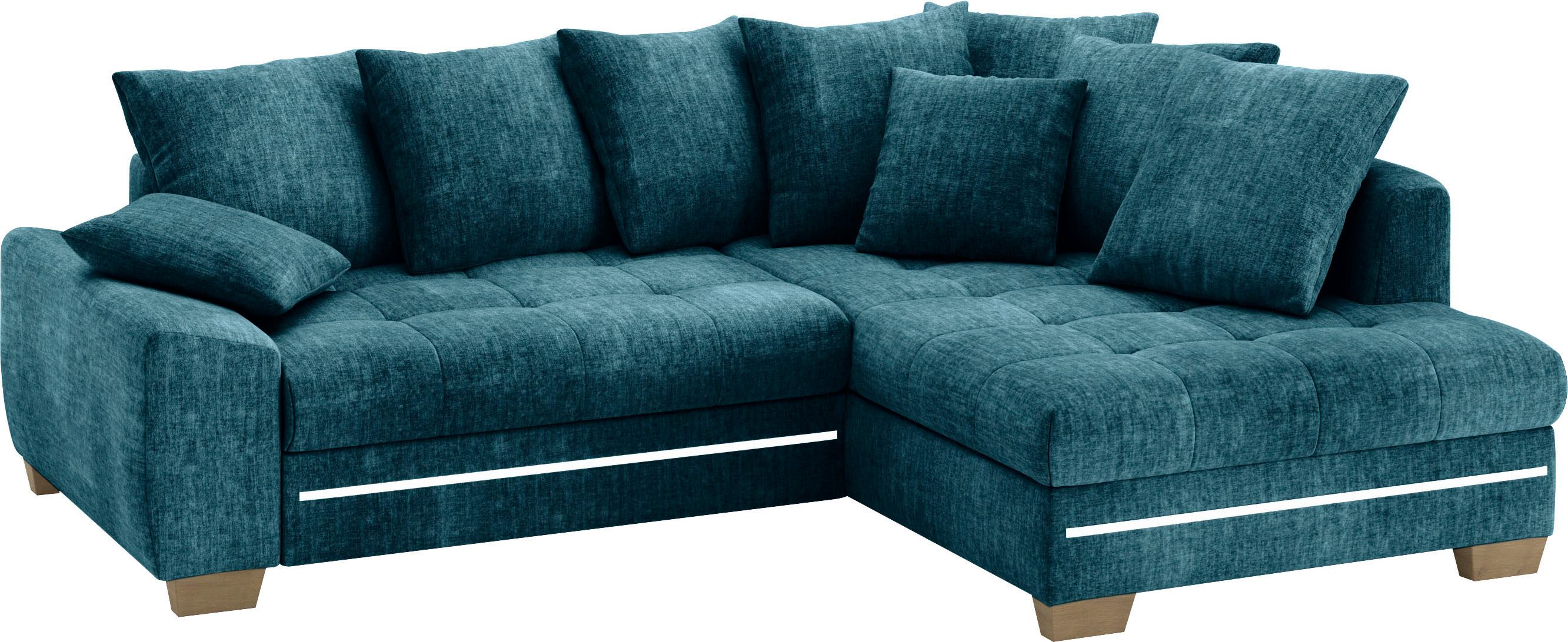 Dieses bequeme Ecksofa »Nikita II, L-Form« von Mr. Couch hat eine Besonderheit: Die RGB-LED-Lichtleiste. Sie sorgt für tolle Lichteffekte, die eine wohlige Stimmung mit sich bringen. Je nach Bedarf kann auch die Lichtfarbe eingestellt werden. Außerdem handelt es sich hierbei um ein echtes Platzwunder, da es mit einem ausziehbaren Bettkasten versehen und somit Schlaf- und Ruhezone in einem ist. Wovon du auch profitierst, sind die passenden Zierkissen, die das Sofa noch komfortabler machen. Von vorne betrachtet ist die Ottomane nach rechts ausgerichtet. Die maximale Belastbarkeit pro Sitzplatz liegt bei einem Gewicht von 140 Kilogramm. Der Bezug aus Microfaser ist durch die feine Faserzusammensetzung sehr belastbar und weich. Dieses Modell wurde von Hand gefertigt.