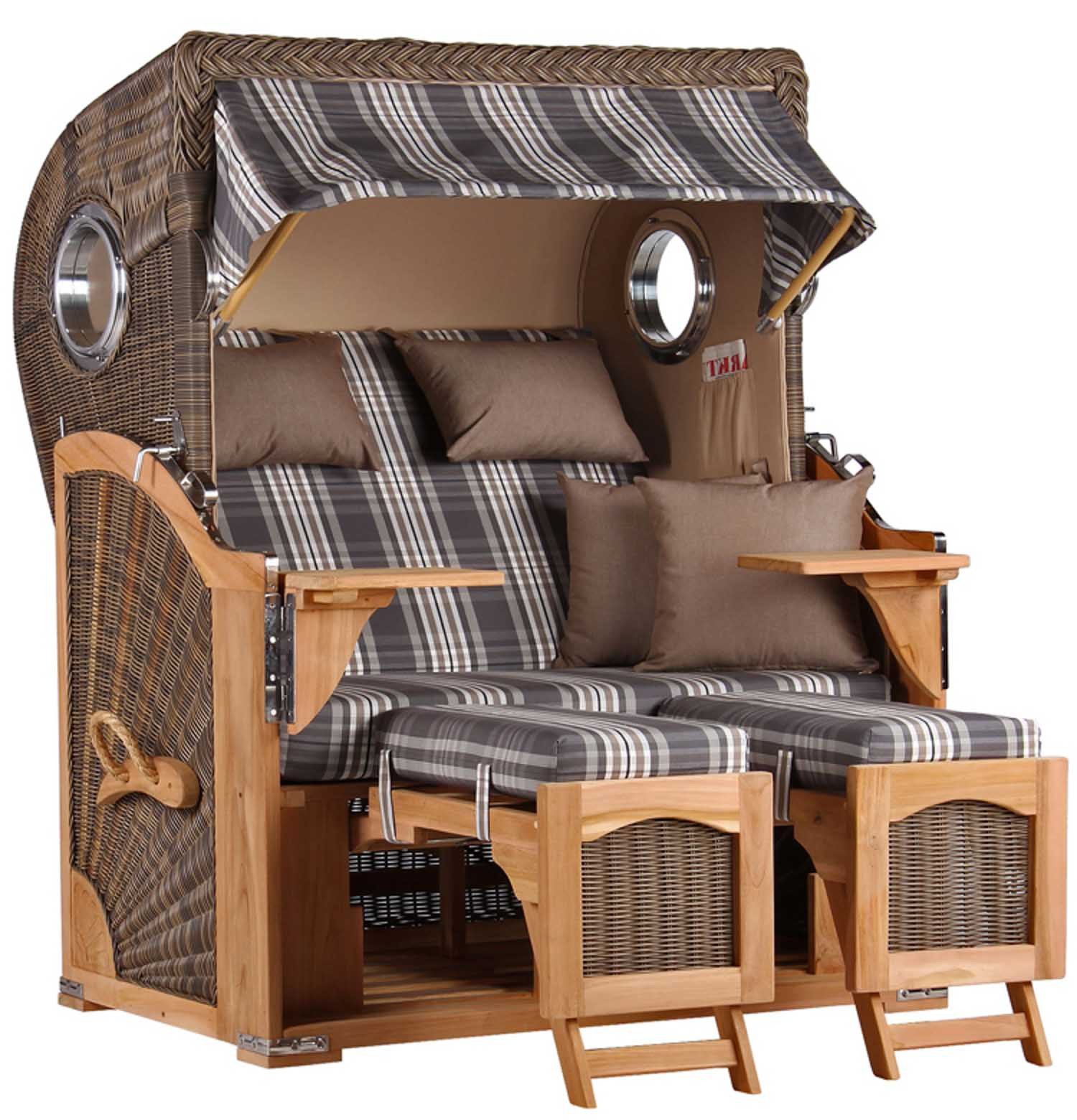 Der Strandkorb Düne Teak PE grey mit Bullaugen - gemütlicher Zweisitzer mit exklusiver Ausstrahlung