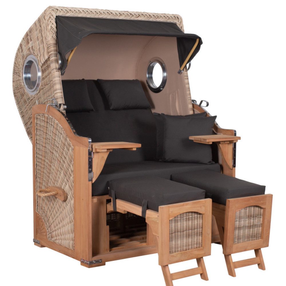 Der Strandkorb Düne Teak PE shell mit Bullaugen - gemütlicher Zweisitzer mit exklusiver Ausstrahlung