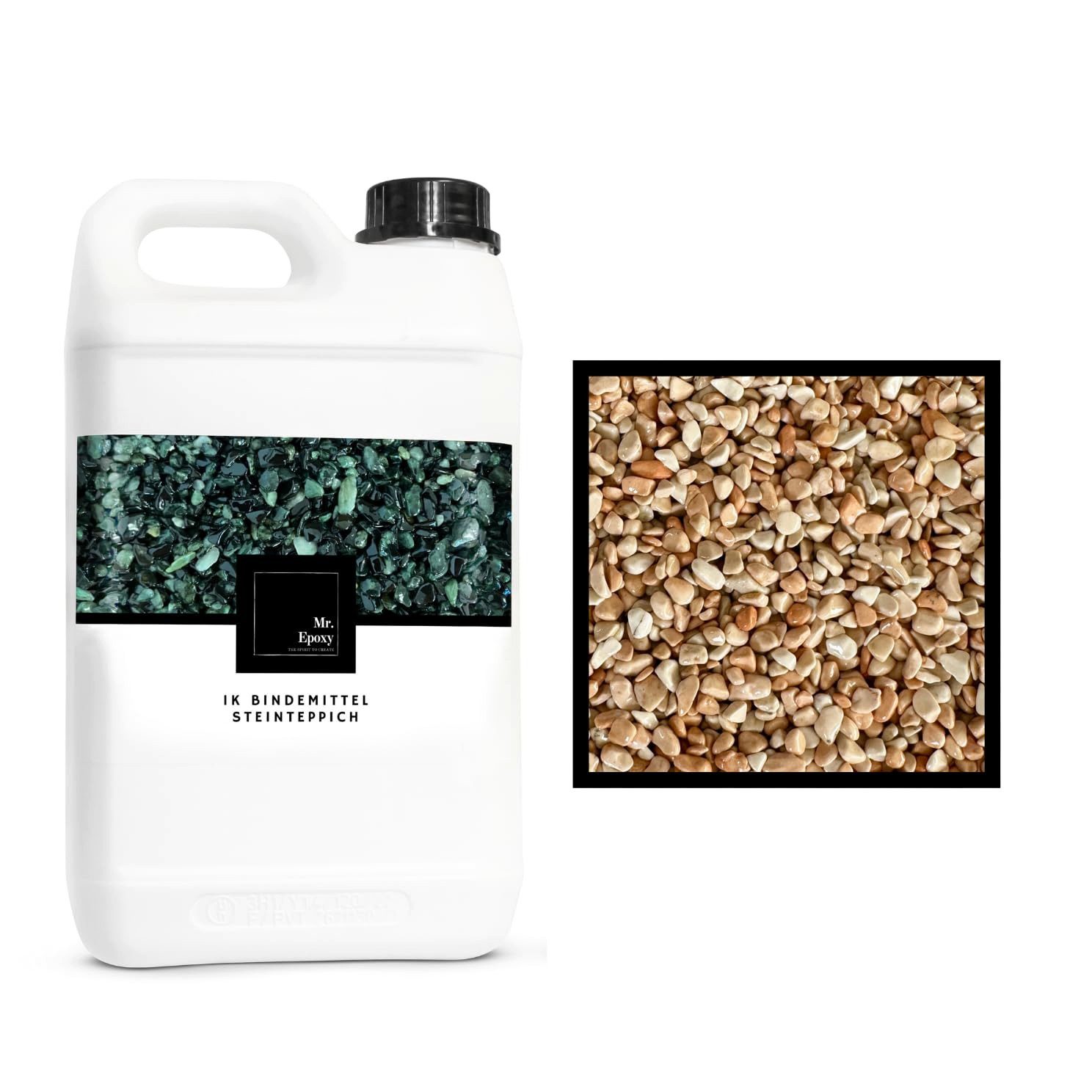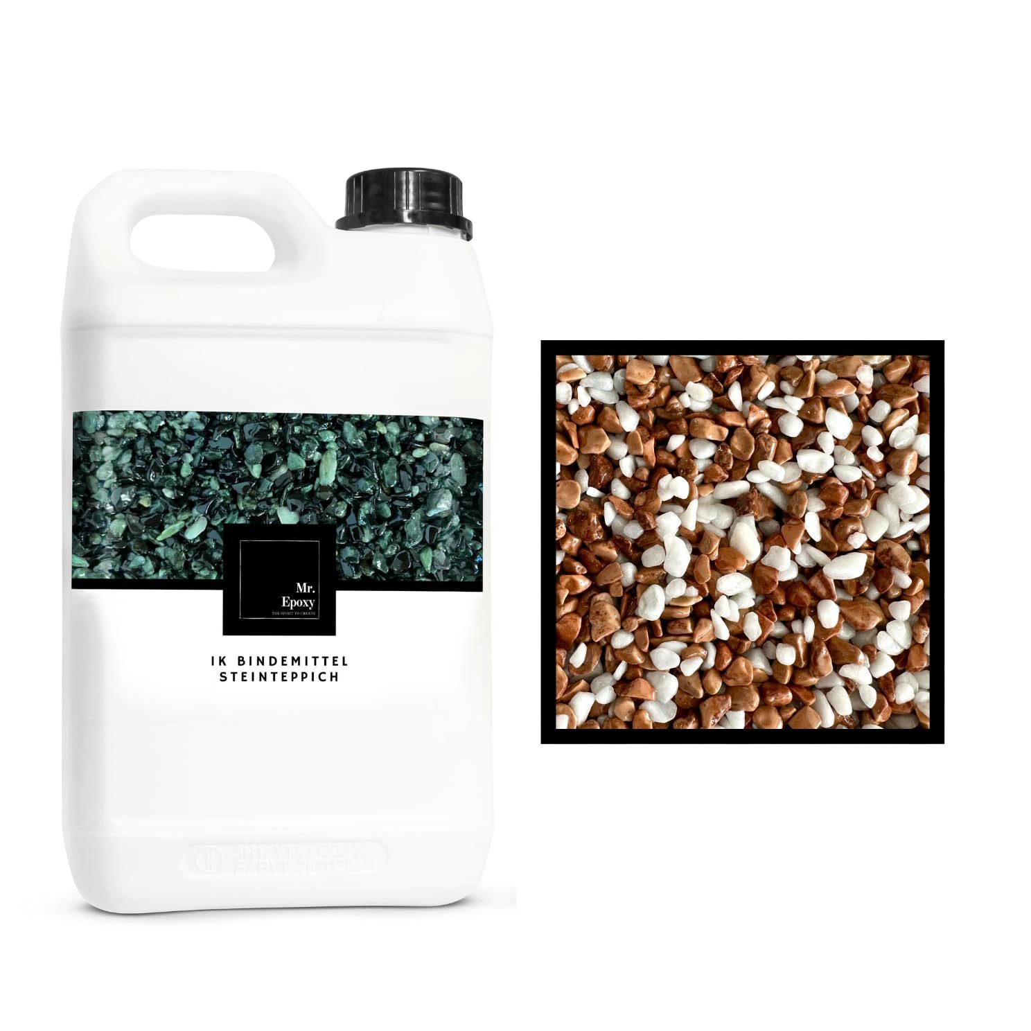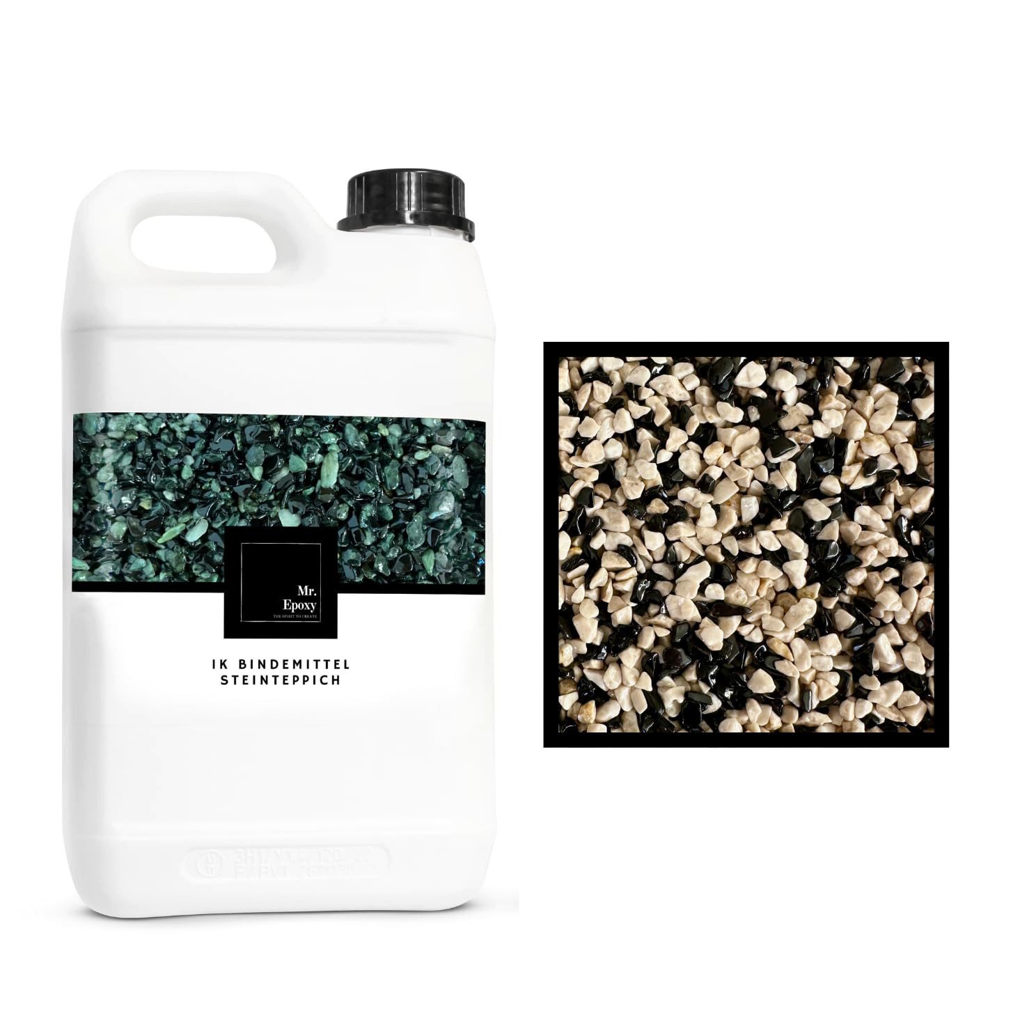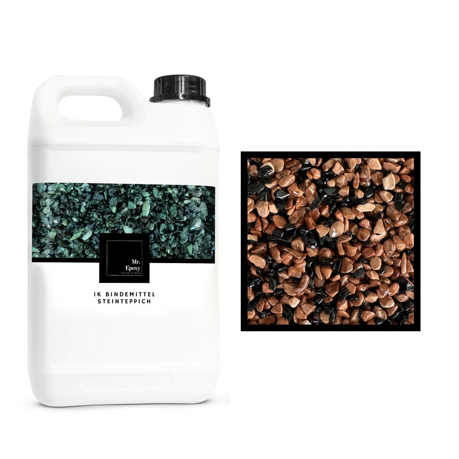 Mr. Epoxy Bodenversiegelung Steinteppich Komplettset, (25 kg Kieselsteine + 1,3 kg Bindemittel) - Buntsteinputz Bodenbelag