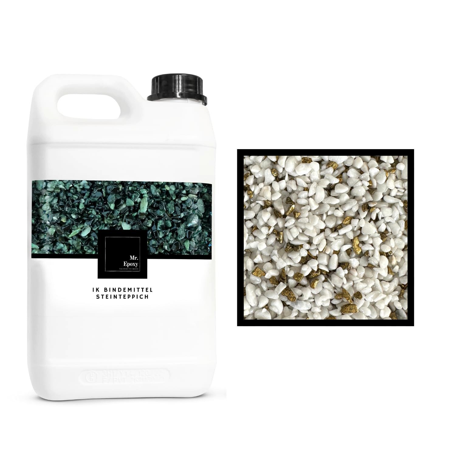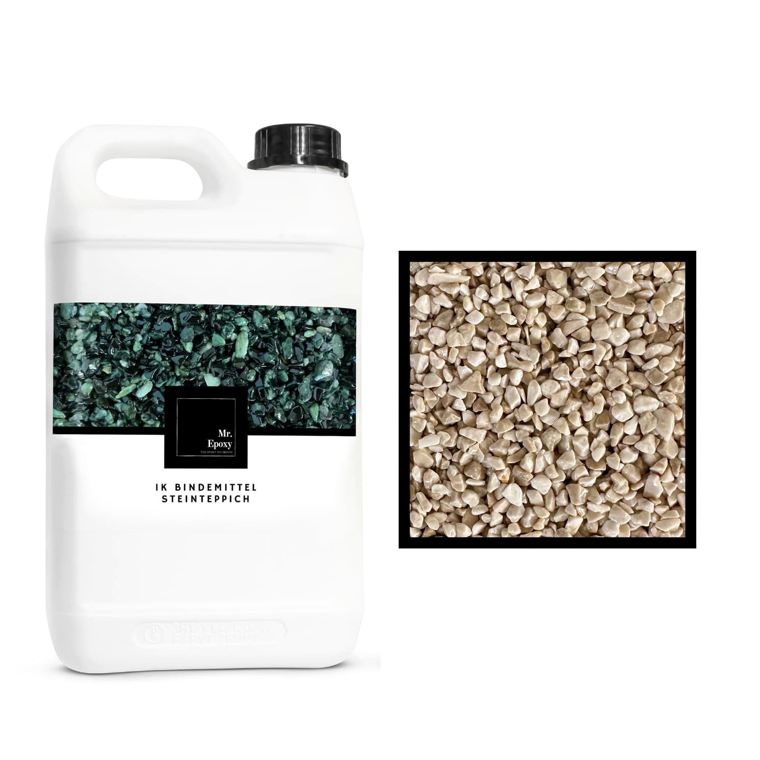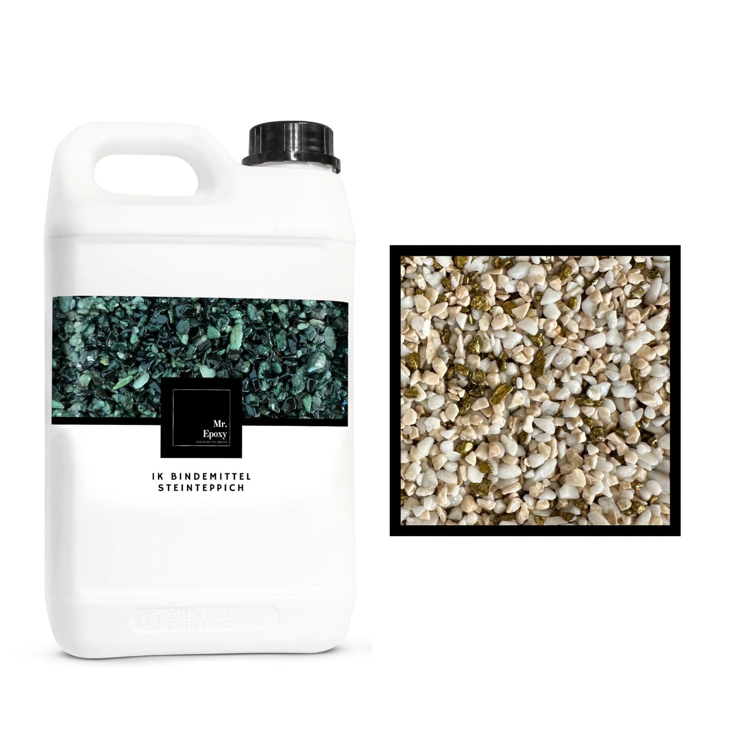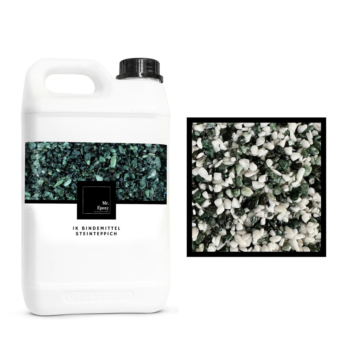 Mr. Epoxy Bodenversiegelung Steinteppich Komplettset, (25 kg Kieselsteine + 1,3 kg Bindemittel) - Buntsteinputz Bodenbelag