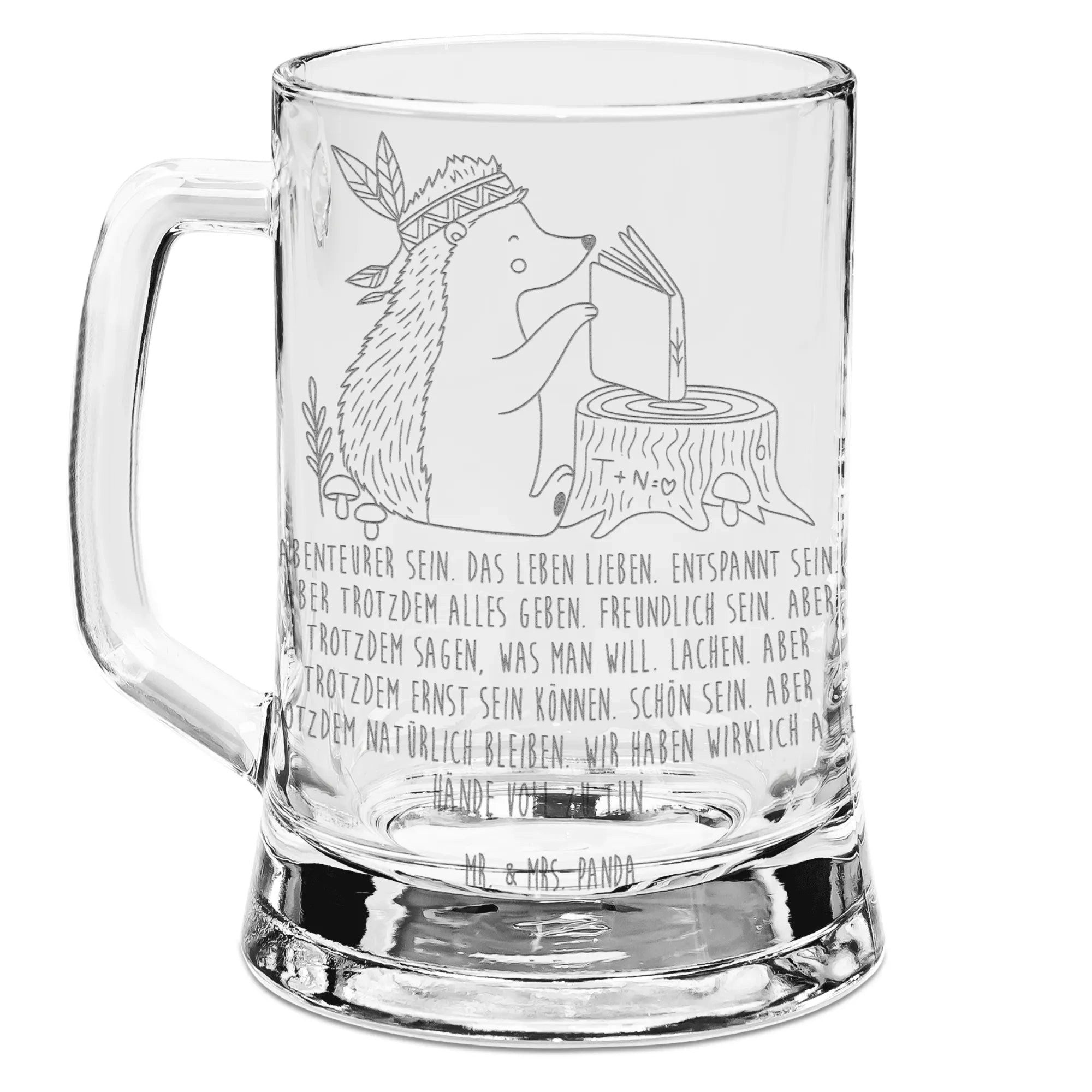 Entdecke den wunderschönen Bierkrug mit toller Gravur von Mr. & Mrs. Panda! Verziert mit inspirierenden Sprüchen und zauberhaften Motiven von Mr. & Mrs. Panda, ist dieser Bierkrug das perfekte Geschenk für alle Bierliebhaber. Produkteigenschaften: Unser hochwertig gravierter Bierkrug ist das ideale Geschenk für alle, die gerne Bier trinken. Ob zum Geburtstag, zu Weihnachten, zum Jahrestag oder als Vatertagsgeschenk – dieser Bierkrug erfreut jeden, der gerne Bier trinkt. Hochwertige Lasergravur: Durch präzise Erhitzung wird Material abgetragen, wodurch ein eleganter Matteffekt entsteht. - Material: Robustes Glas für Langlebigkeit und Stil. - Maße: Höhe 163 mm, Durchmesser 85 mm, mit einer Füllmenge von 450 ml. - Pflegehinweis: Spülmaschinengeeignet für mühelose Reinigung und mehr Zeit zum Genießen. Dieser Bierkrug vereint Qualität, Stil und die einzigartigen Designs von Mr. & Mrs. Panda. Er ist nicht nur ein Trinkgefäß, sondern auch ein Statement für die Liebe zum Bier. Entdecke die Magie eines exquisiten Bierkrugs mit dieser besonderen Gravur!