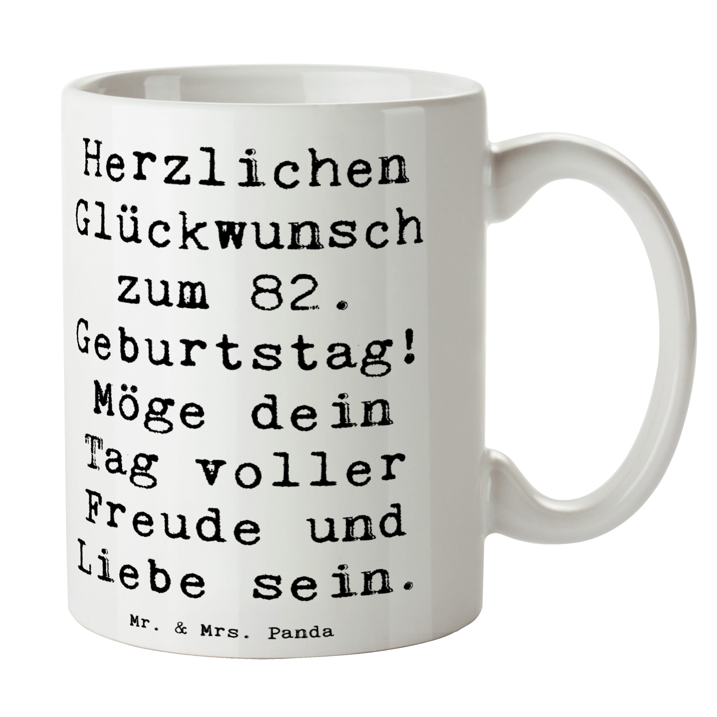 Wunderschöne handgefertigte Geschenke zum 82. Geburtstag - Perfekte Überraschungen für deine Lieben!Der 82. Geburtstag ist ein wahrhaft besonderer Meilenstein im Leben eines Menschen. Es sind 82 Jahre voller Erinnerungen, Erfahrungen, und wundervoller Momente, die gefeiert werden wollen. Ein solcher Tag verdient es, mit Liebe, Freude, und Dankbarkeit begangen zu werden. Bei Mr. & Mrs. Panda verstehen wir, wie wichtig es ist, diesen besonderen Anlass gebührend zu feiern. Unsere handgefertigten Produkte sind genau das Richtige, um diesen Ehrentag mit einem persönlichen und einzigartigen Geschenk zu bereichern. Ob es sich um hübsche Deko, herzliche Grußkarten oder liebevoll gestaltete Accessoires handelt, unsere Kollektionen sind mit viel Liebe zum Detail gefertigt. Der 82. Geburtstag ruft danach, ein schönes Fest im Kreise der Liebsten zu veranstalten, Geschichten aus vergangenen Zeiten zu teilen und neue, wertvolle Erinnerungen zu schaffen. Die Freude und das Leuchten in den Augen des Geburtstagskindes sind unbezahlbar. Begleite diesen besonderen Tag mit einem Geschenk, das von Herzen kommt und zeige, wie viel dir dieser Mensch bedeutet. Mr. & Mrs. Panda sind hier, um dir zu helfen, den 82. Geburtstag zu etwas ganz Besonderem zu machen.