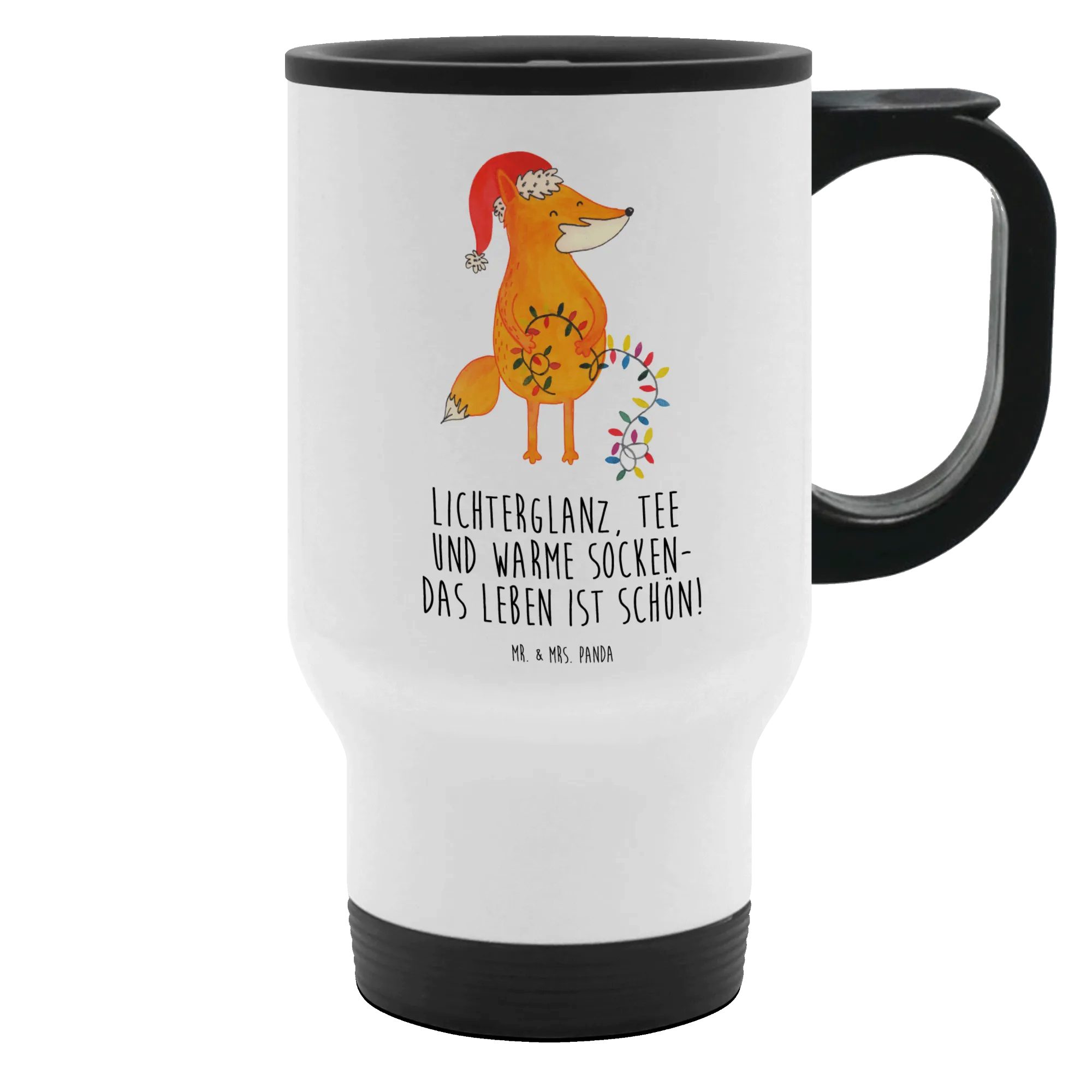 Fuchs Weihnachten – Fröhlicher Fuchs mit Weihnachtsmütze und Lichterkette | Saisonale Deko und Geschenkidee für die FeiertageDie Fox Edition ist eine besonders liebevolle Kollektion von Mr. & Mrs. Panda. Jedes Motiv ist wie immer bei Mr. & Mrs. Panda handgezeichnet und wird in unserer Manufaktur im Herzen Norddeutschlands produziert. Der Weihnachts-Fuchs ist das perfekte Geschenk für die Weihnachtszeit.