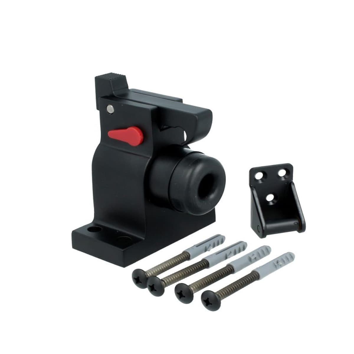 Unser moderner Schwarz matter Türfeststeller in massiver Ausführung ist perfekt geeignet zum Feststellen von schweren Türen und dient dank seiner Funktion auch als Türstopper. Zum Lieferumfang gehört neben dem Türstopper noch eine Bohrschablone, das Befestigungsmaterial für den Bodentürstopper und das Gegenstück, welches an der Türe montiert wird. Das mitgelieferte Befestigungsmaterial ist für die Bodenmontage des Türstoppers, nicht für das Gegenstück welches an die Tür geschraubt wird. Wir bieten dieses nicht an, da die verschiedenen Türarten wie Holztüren, Stahltüren mit verschiedenen Türstärken auch unterschiedliches Befestigungsmaterial erfordern.