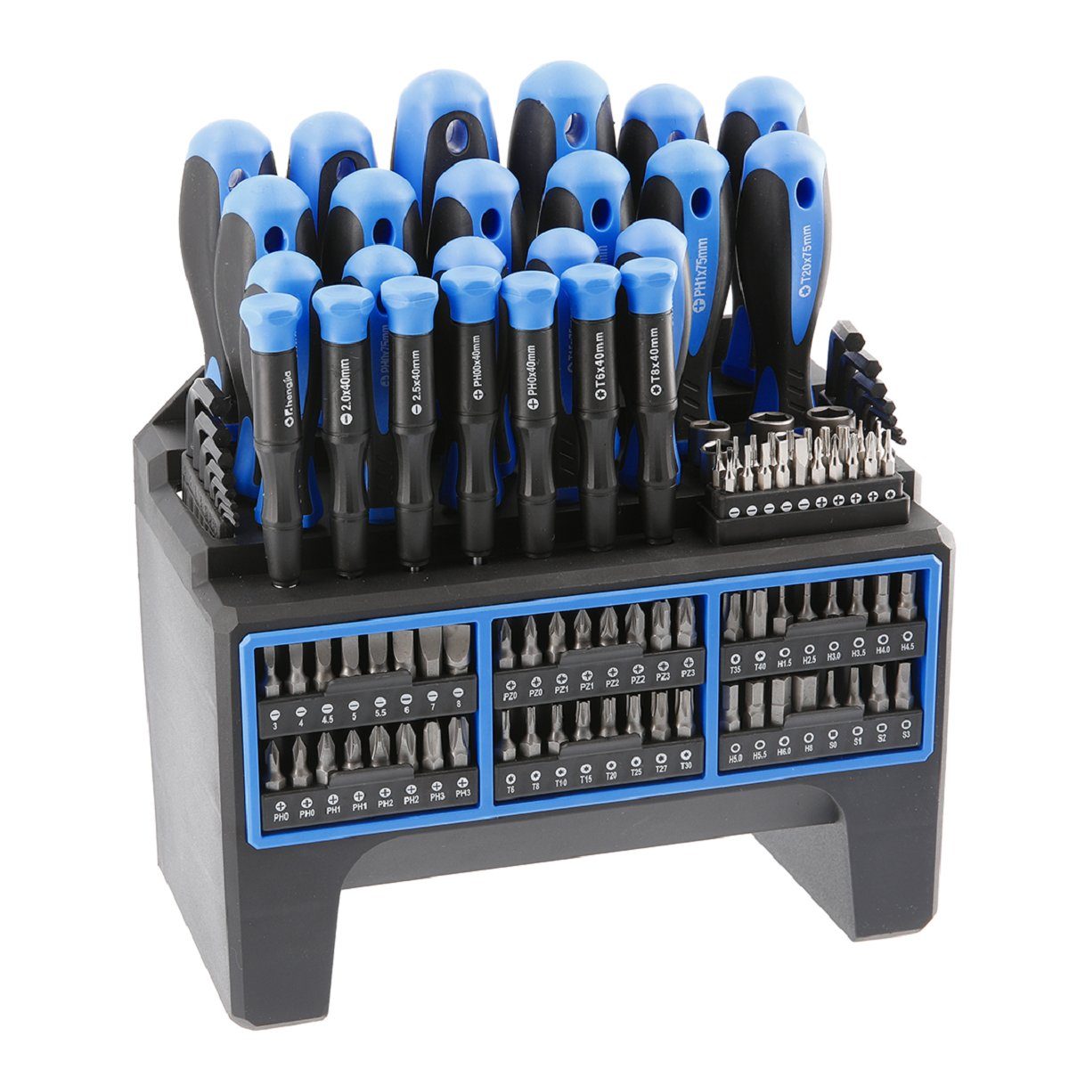 Mit diesem vielseitigen Högert Schraubendreher- und Bit Set haben Heim- und Handwerker jederzeit das richtige Werkzeug zur Hand. Mit den 16 Schraubendrehern, 48 Schraubendreherbits, 16 Sechskantschlüssel, 20 Präzisionsschraubendreherbits, 6 Präzisionsschraubendreher, 6 Stecknüsse und den 2 Bithalteradaptern sind Sie bestens ausgestattet. Dank der mitgelieferten Box, die auch zur Wandmontage geeignet ist, können Sie ihr Werkzeug übersichtlich und griffbereit aufbewahren.